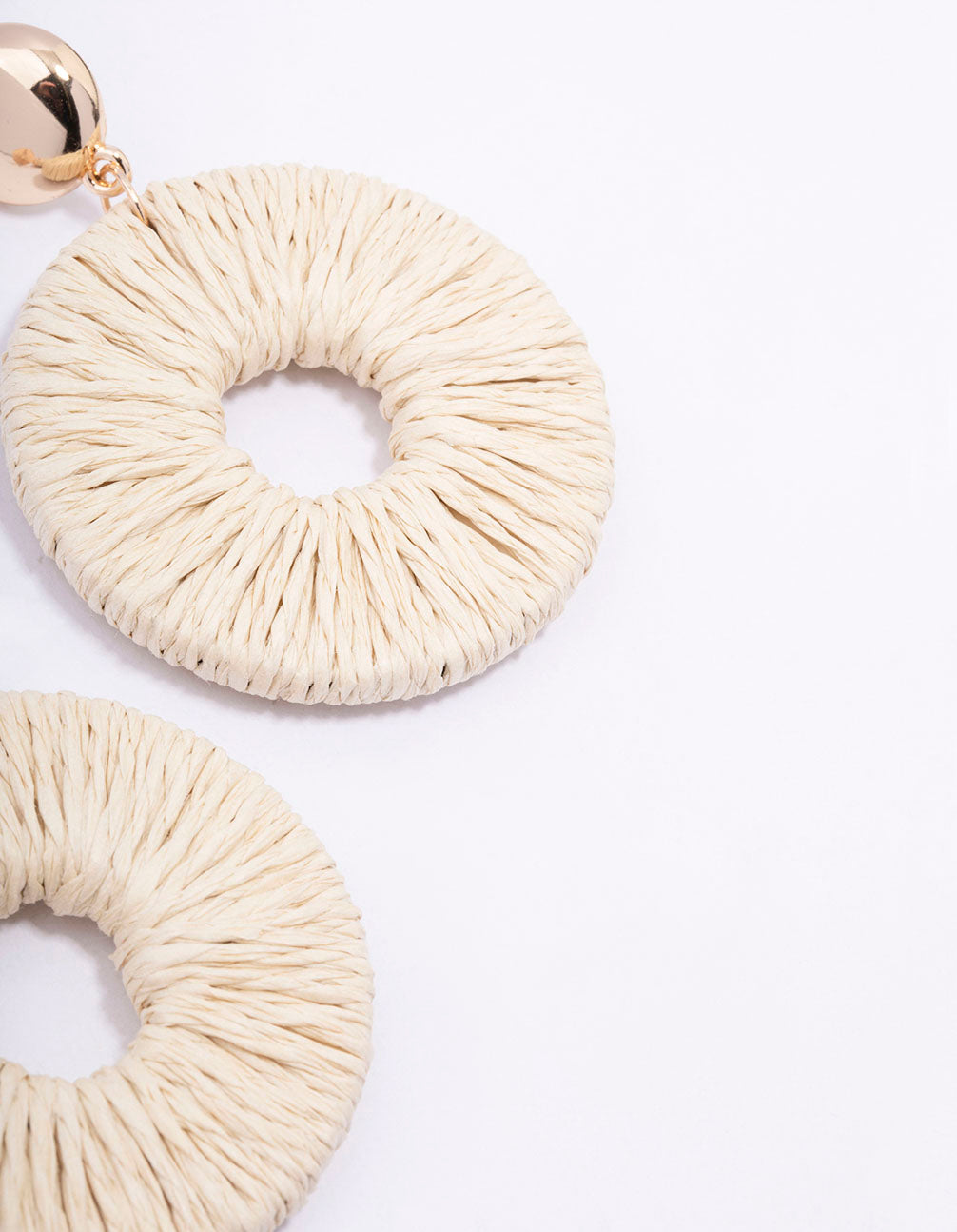 Style these Gold Disc Raffia Circle Drop Earrings with a set of simple studs for a layered look.