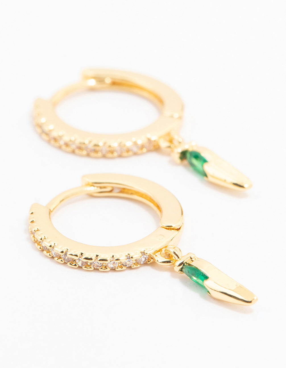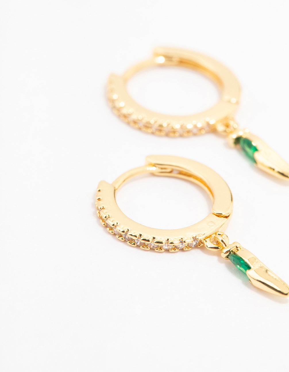 Gold Plated Emerald & Cubic Zirconia Pointed Pear Huggie Earrings Gold Plated Emerald & Cubic Zirconia Pointed Pear Huggie Earrings Gold Plated Emerald & Cubic Zirconia Pointed Pear Huggie Earrings
