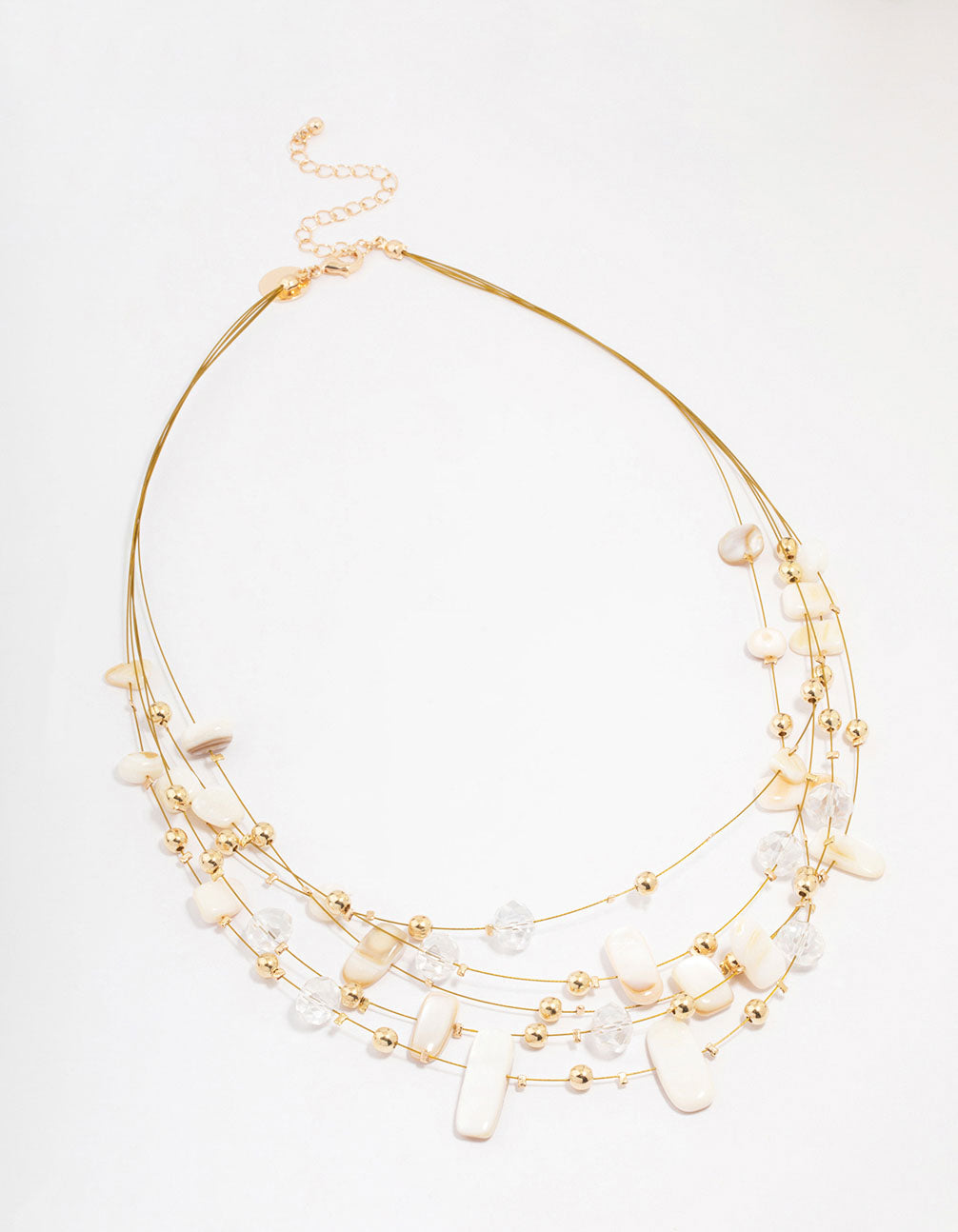 This unique, gold-toned necklace features a collection of layers, adorned with seashells for a beachy finish.