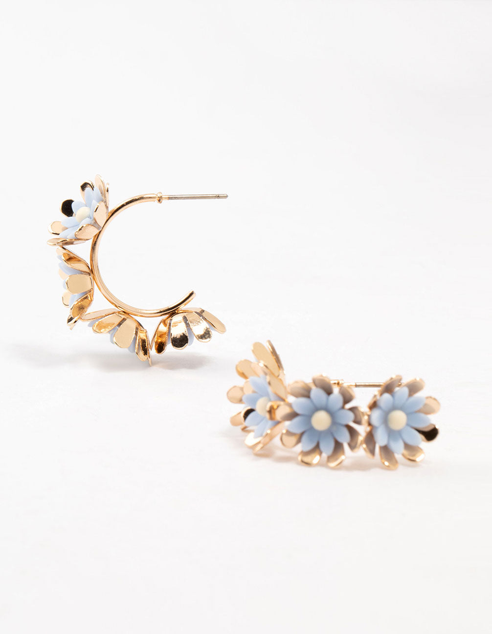 Gold Layered Blue Flower Hoop Earrings