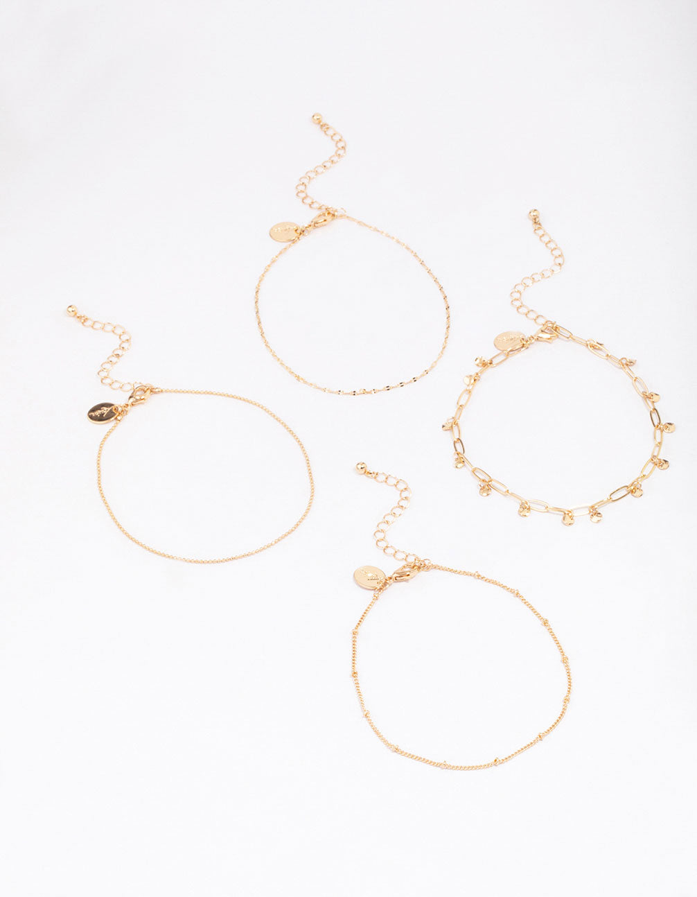 Style the growing anklet trend! Anklets are becoming an it-girl staple in any jewellery collection. Embody the trend yourself with this four pack of embellished, gold-toned anklets.