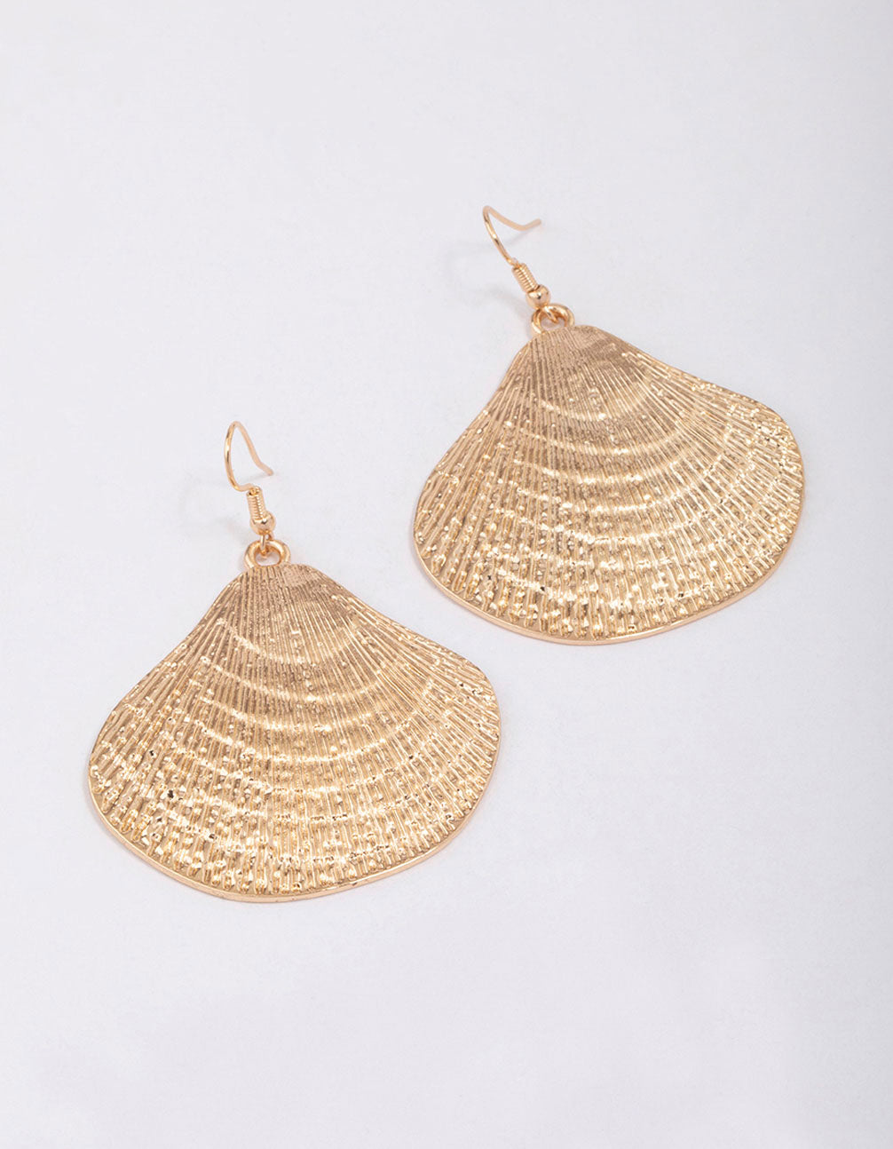 These large drop earrings feature a combination of blue and pearl stones, with unique shells in a gorgeous gold tone.