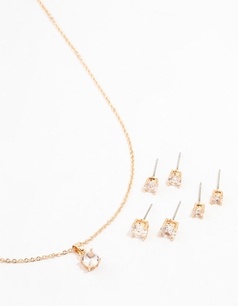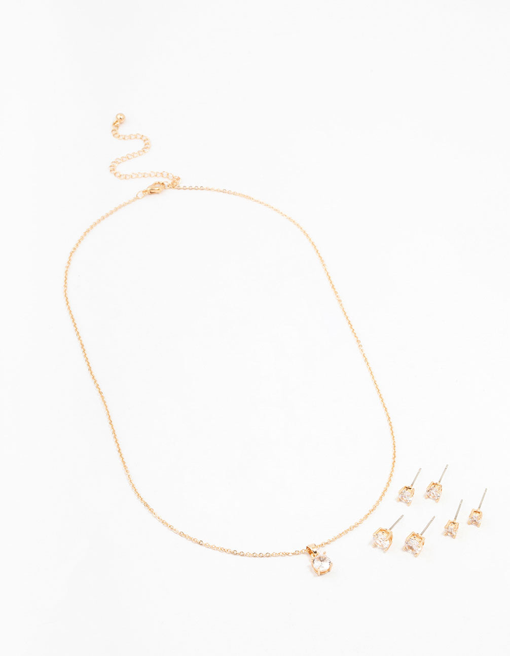 Gold Cubic Zirconia 6-Pack Stud  Earrings & Necklace Set Gold Cubic Zirconia 6-Pack Stud  Earrings & Necklace Set Gold Cubic Zirconia 6-Pack Stud  Earrings & Necklace Set