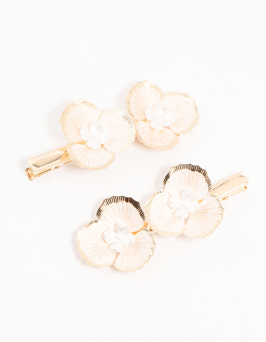 Add a pop of bridal charm with these dazzling gold origami flower hair clips. Perfect for weddings or just adding a touch of shine to your day, this 2-pack brings a fabulous touch to any hairstyle.