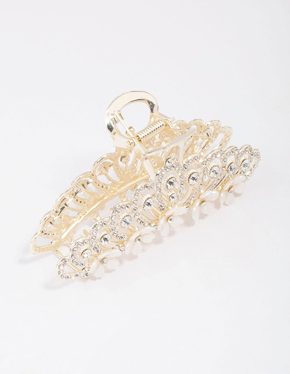 Gold Ornate Diamante & Flower Hair Claw Clip