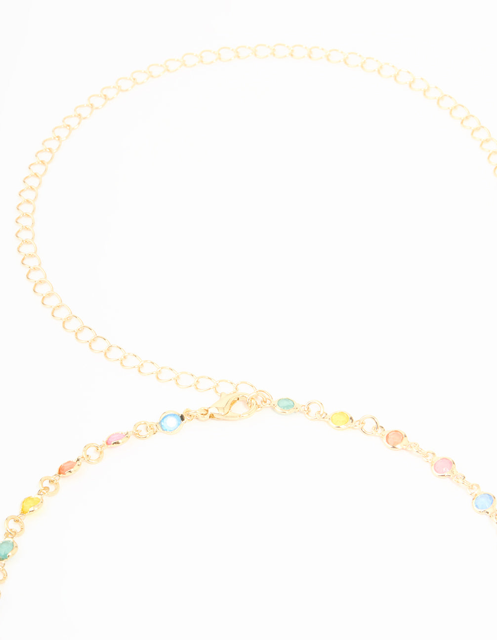 • Gold Pastel Rainbow Stones Waist Chain - link has visual effect only