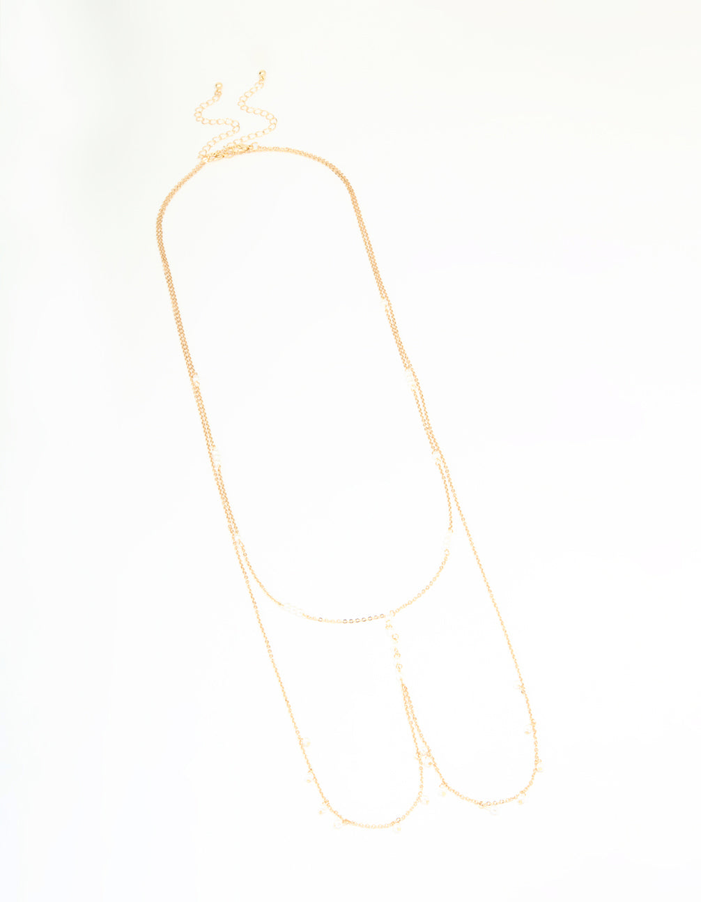 Looking to elevate your accessory game? This Gold Pearl Body Chain is the ultimate statement piece. With it's sleek pearl accents, making it perfect for adding a touch of sophistication to any outfit. Whether you're dressing up for a beach day, a festival, or a night out, this versatile body accessory is your go-to. Style it over a bikini for effortless poolside glamour, layer it with a crop top for a casual edge, or pair it with a sleek dress for a bold look. Lightweight and easy to wear, this body chain is perfect for highlighting your waistline and bringing instant chic to your style.
