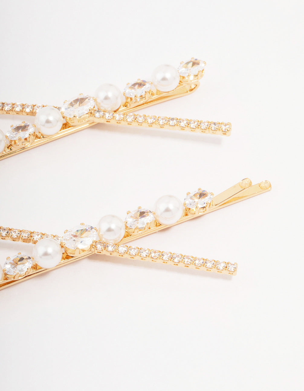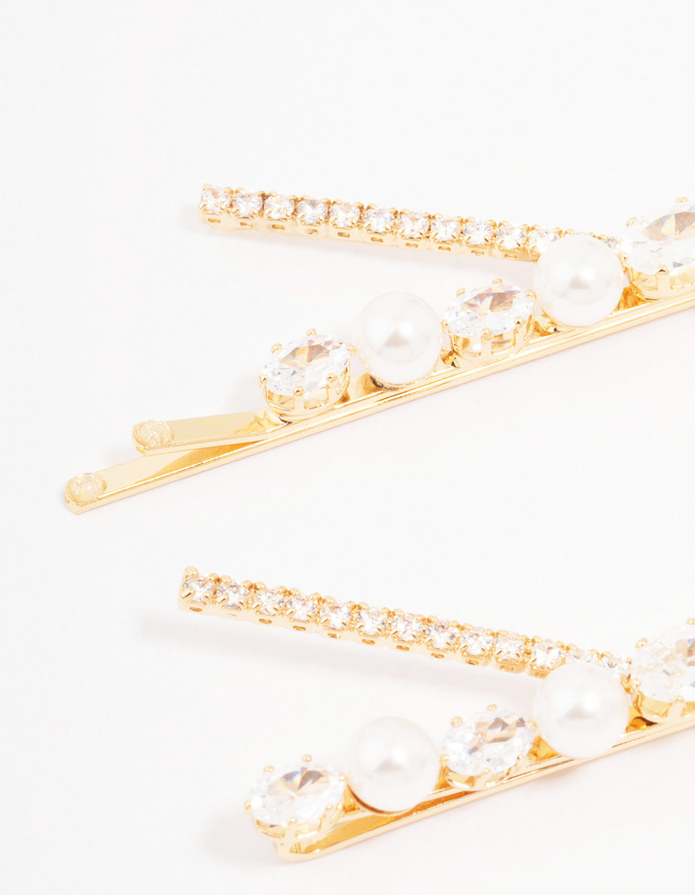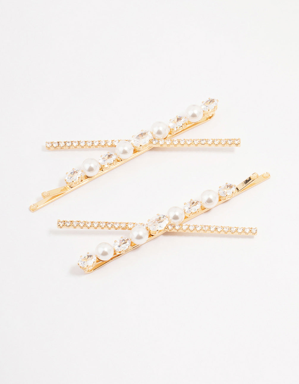 Gold Pearl & Crystal Cross Hair Clip 2-Pack