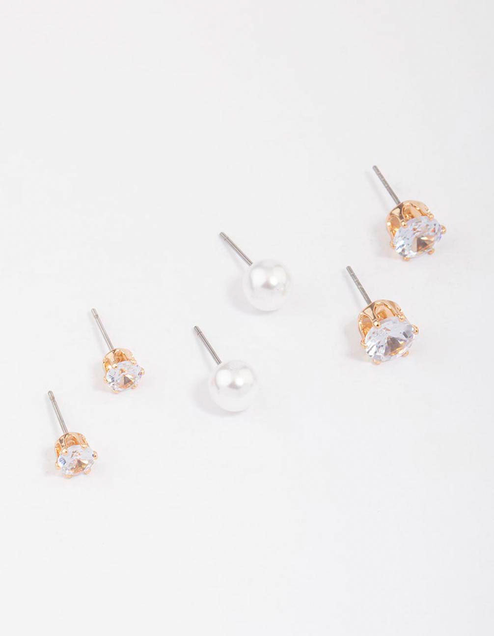 Gold Pearl & Diamante Stud Earring 3-Pack