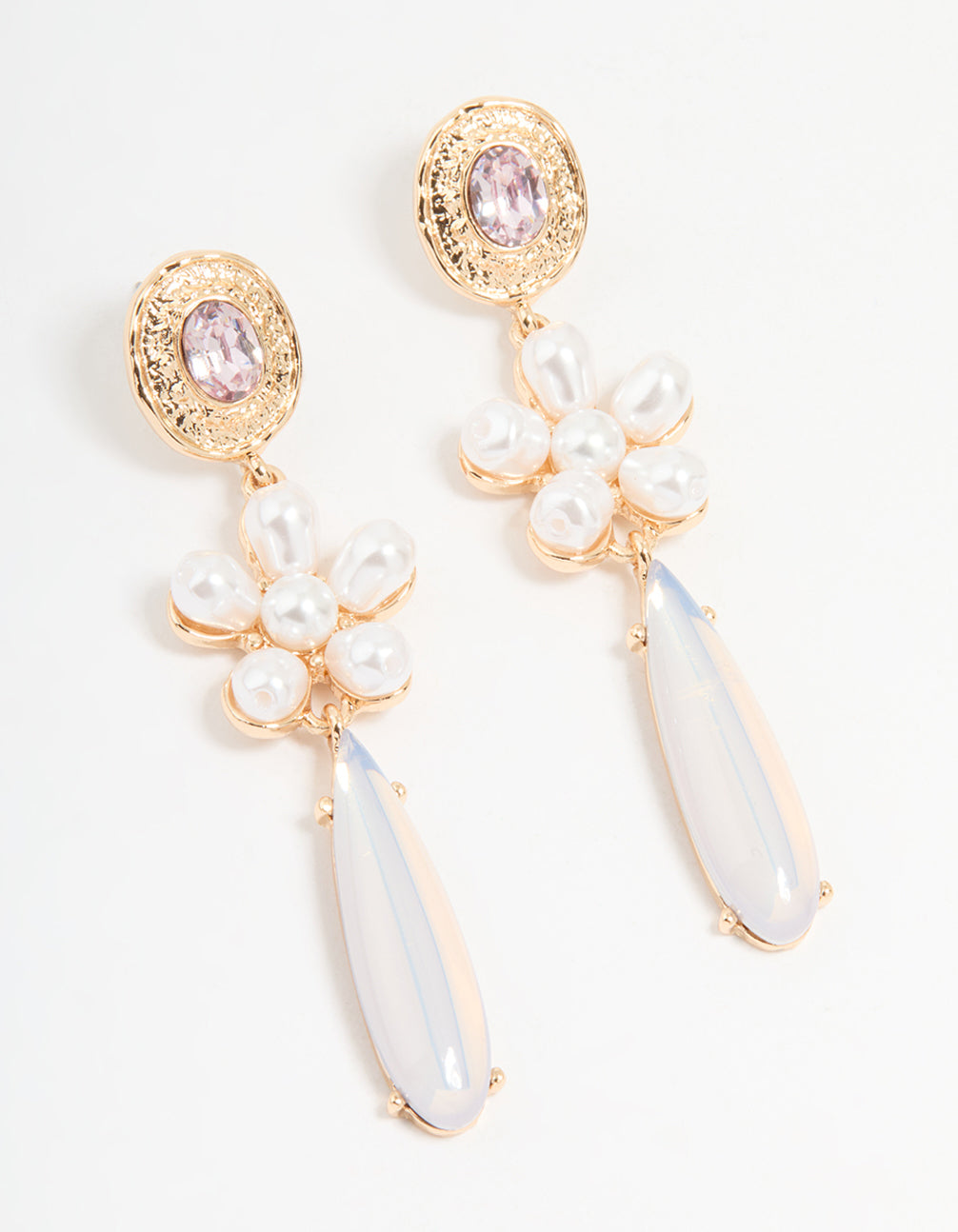 • Gold Pearl & Flower Drop Earrings - link has visual effect only