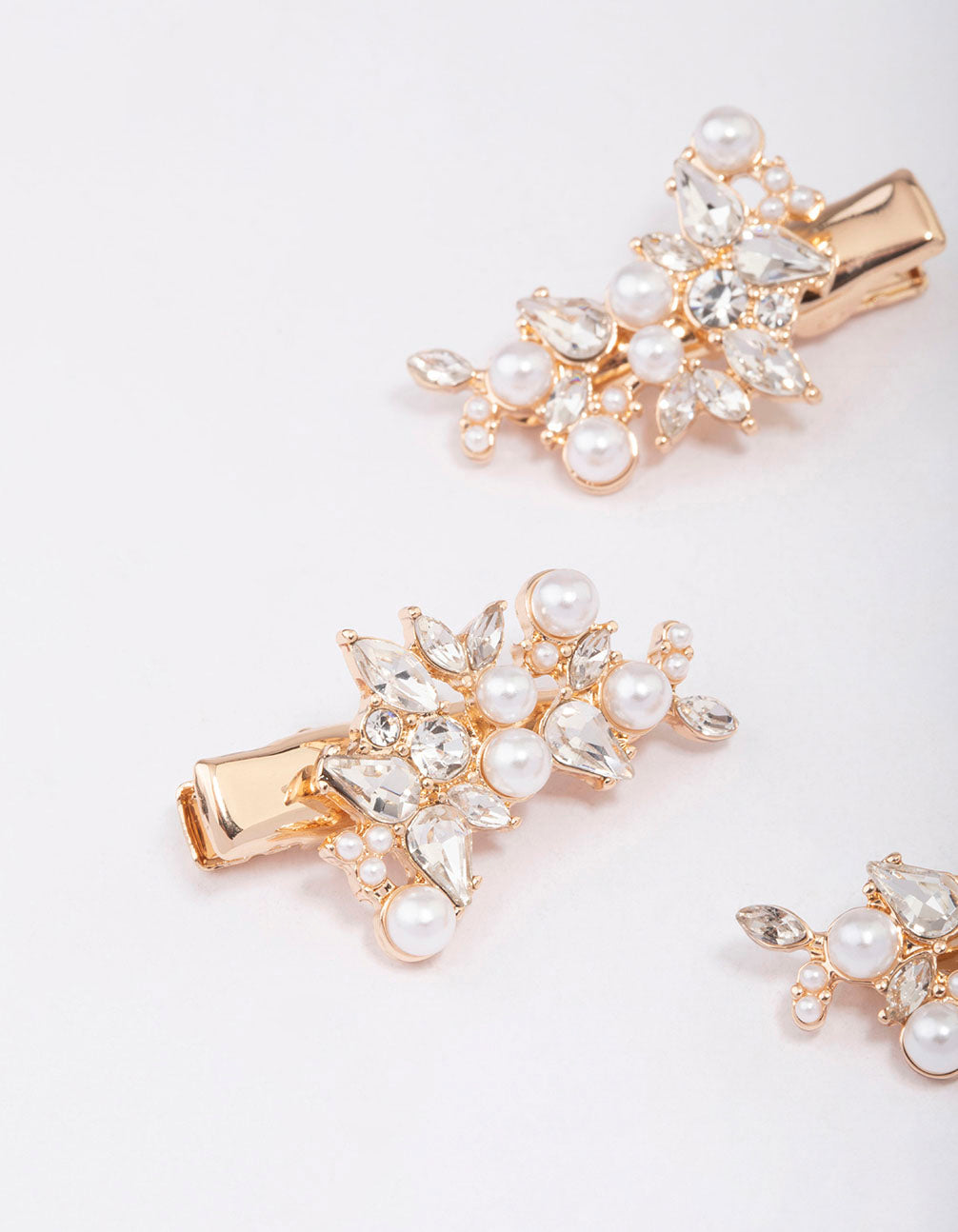 Gold Pearl & Marquise Cluster Hair Clip 3-Pack