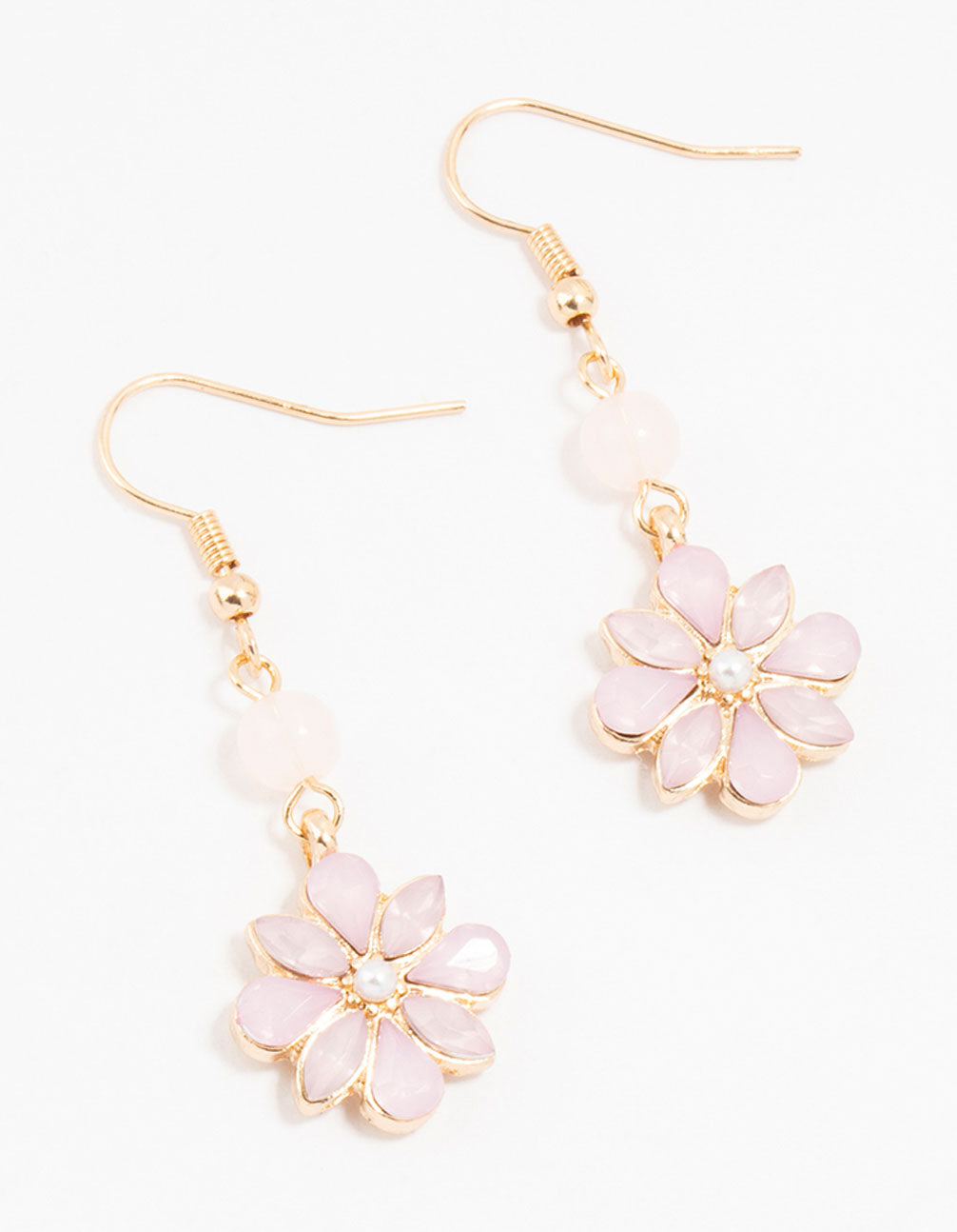 Gold & Pink Beaded Diamante Flower Drop Earrings Gold & Pink Beaded Diamante Flower Drop Earrings Gold & Pink Beaded Diamante Flower Drop Earrings