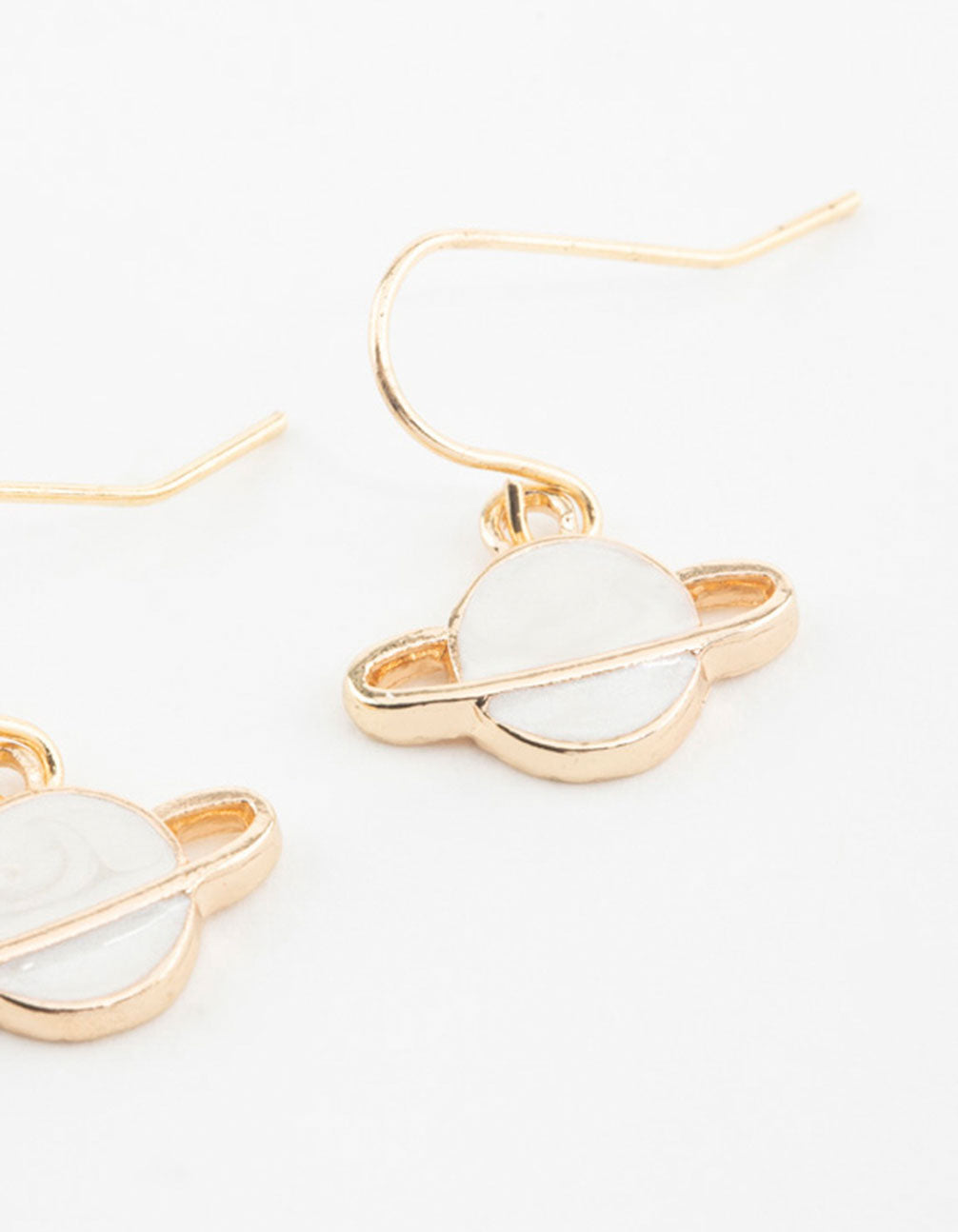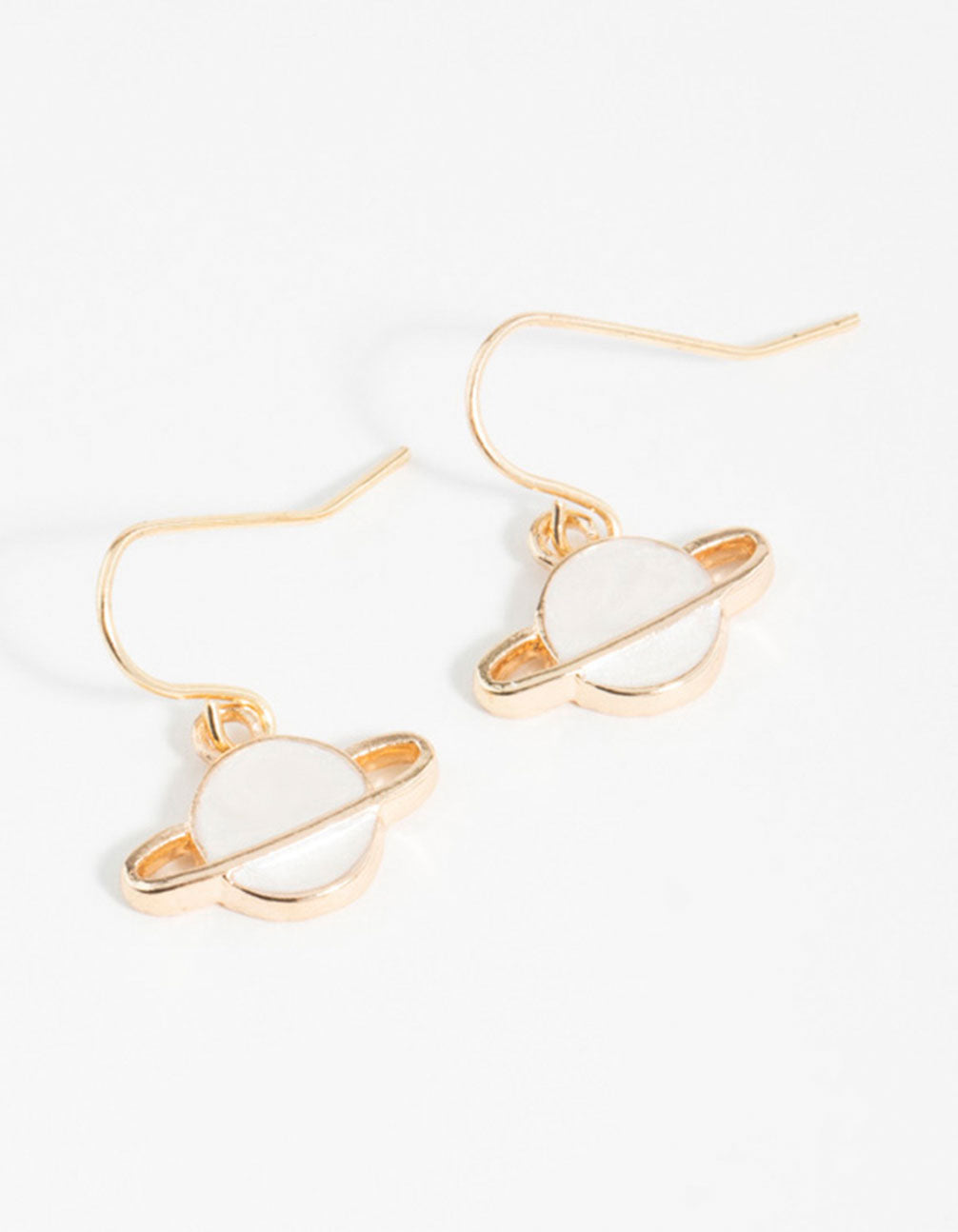 Elevate your style with these gold-toned planet hook earrings! Perfect for an out-of-this-world look.