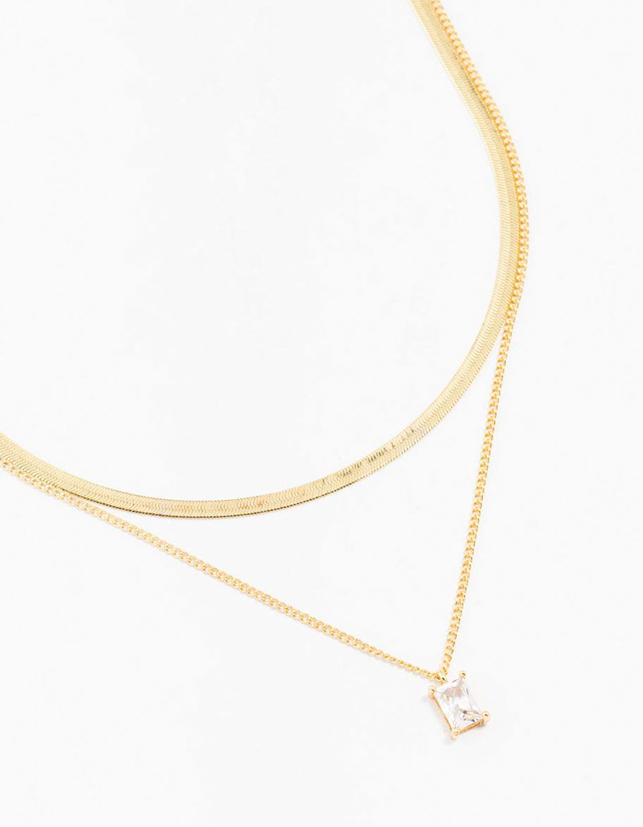 Gold Plated Baguette Snake Pendant Layered Necklace