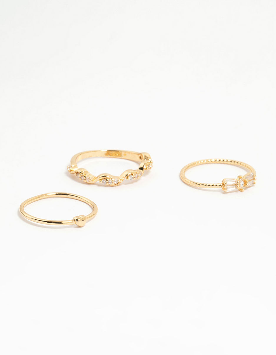 Gold Plated Bow & Mini Heart Stacking Rings 3-Pack