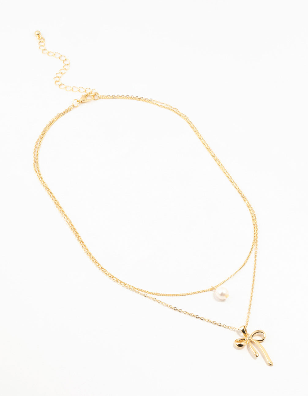 Gold Plated Brass Bow & Pearl Layered Necklace