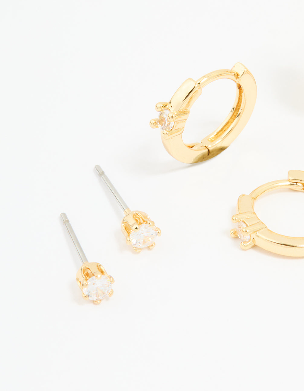 Gold Plated Brass Cubic Zirconia Huggie & Stud Earrings 4-Pack