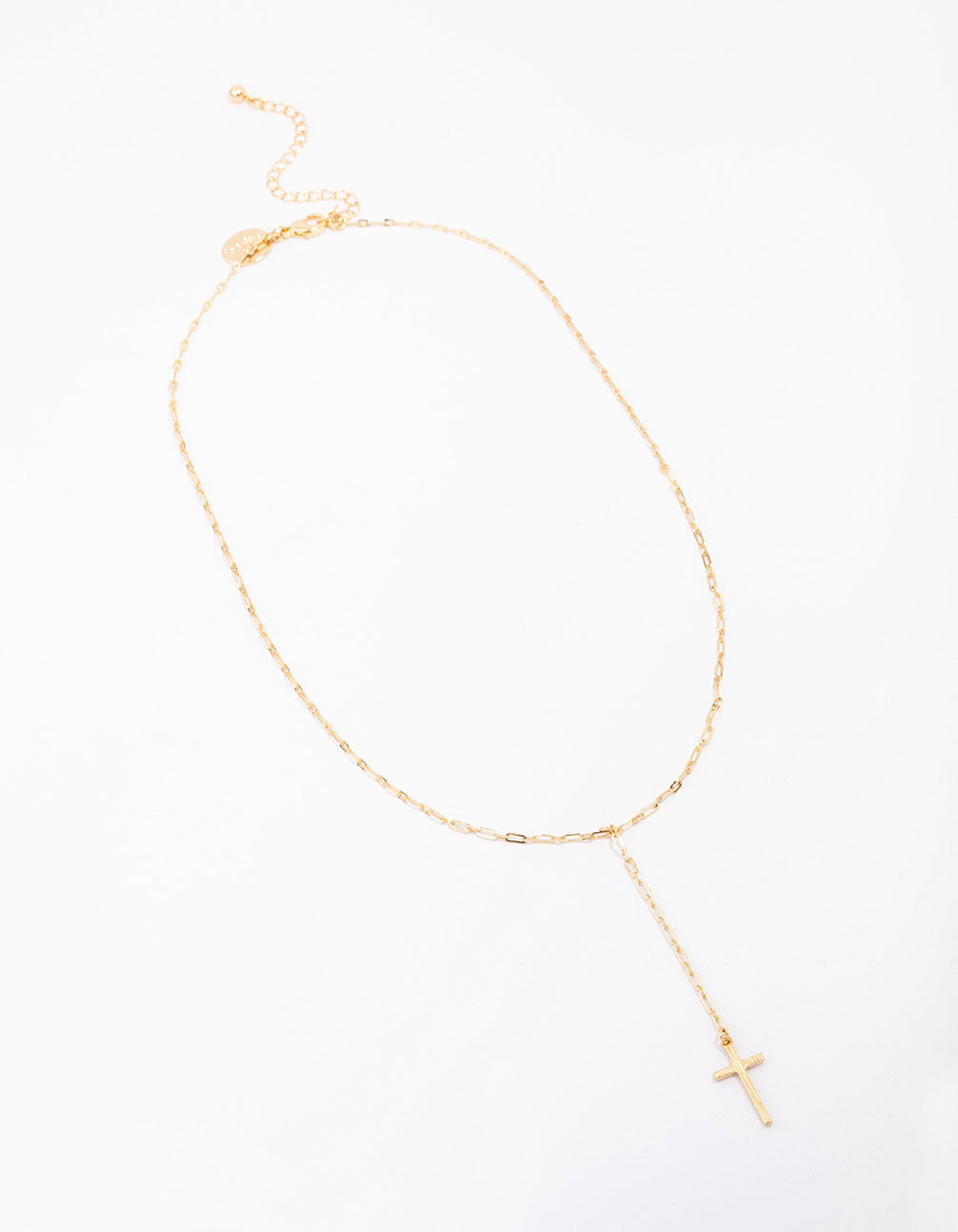 Curate the stack of your dreams with this dainty, gold plated lariat necklace. This real gold chain features a fine chain, adorned with a timeless cross pendant — perfect for adding a refined touch to any outfit.