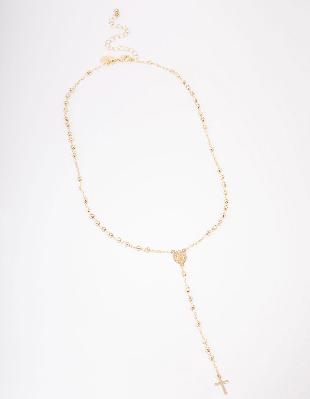 Gold Plated Coin & Cross Lariat Necklace Gold Plated Coin & Cross Lariat Necklace Gold Plated Coin & Cross Lariat Necklace