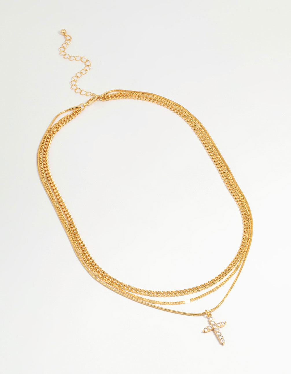 Gold Plated Cross & Chain Layered Necklace