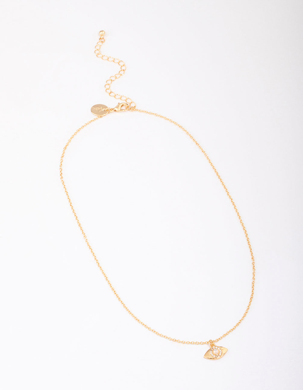 Gold Plated Cubic Zirconia Bling Evil Eye Pendant Necklace