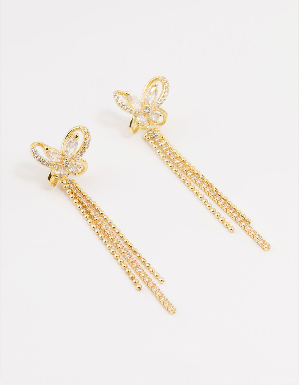 Gold Plated Cubic Zirconia Butterfly Drop Earrings