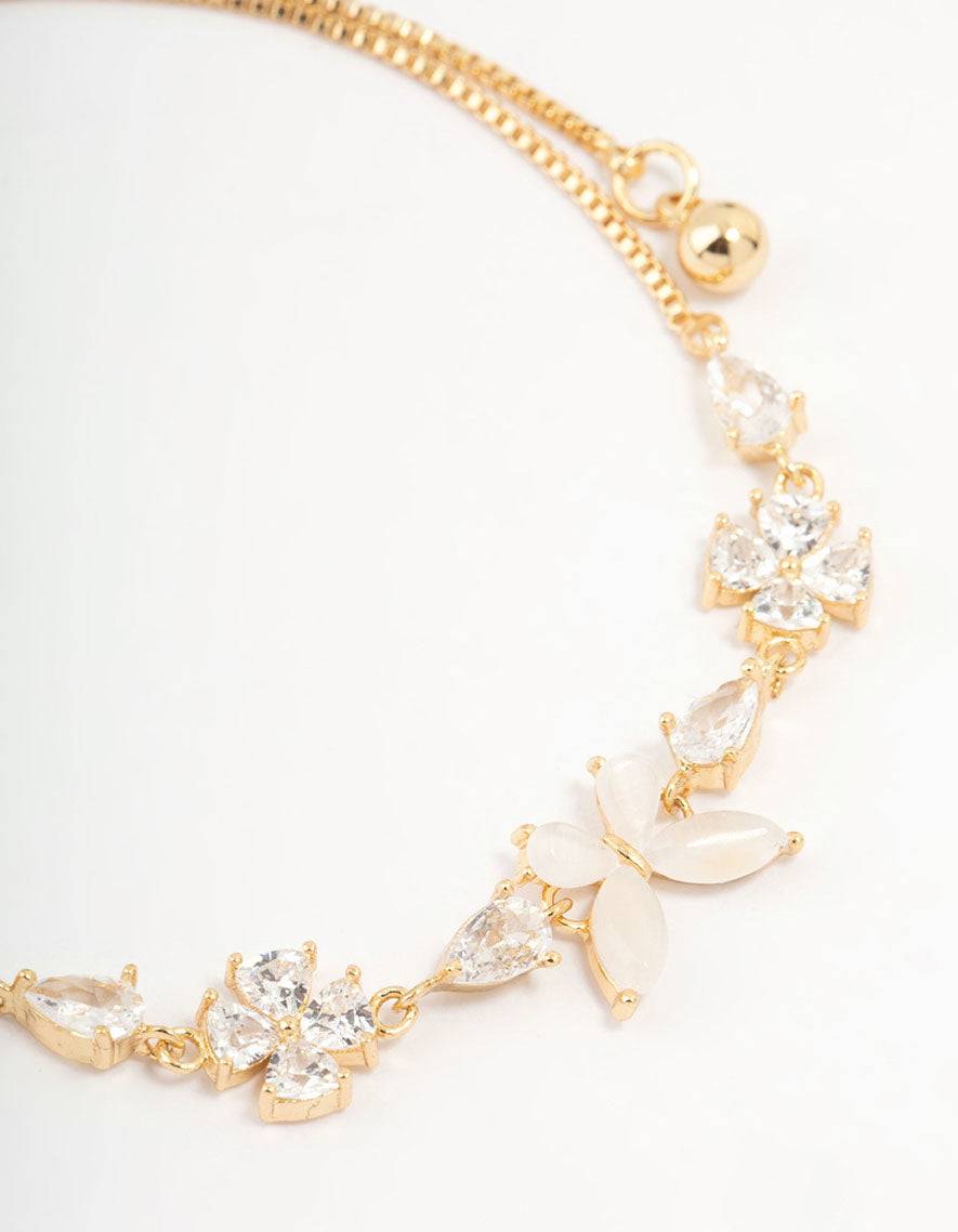 Gold Plated Cubic Zirconia Butterfly & Flower Toggle Bracelet