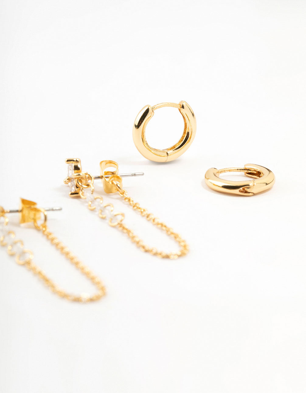 Gold Plated Cubic Zirconia Chain & Hoop Earrings 3-Pack