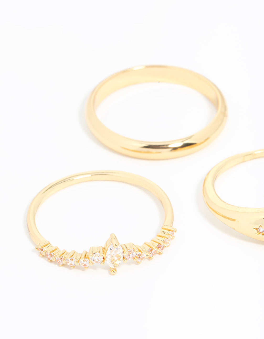 Gold Plated Cubic Zirconia Cluster & Plain Rings 3-Pack