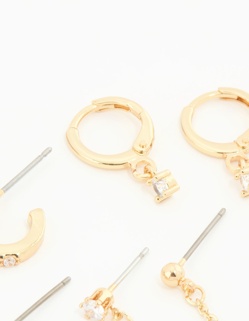Gold Plated Cubic Zirconia Dainty Chain & Huggie Earrings 4-Pack