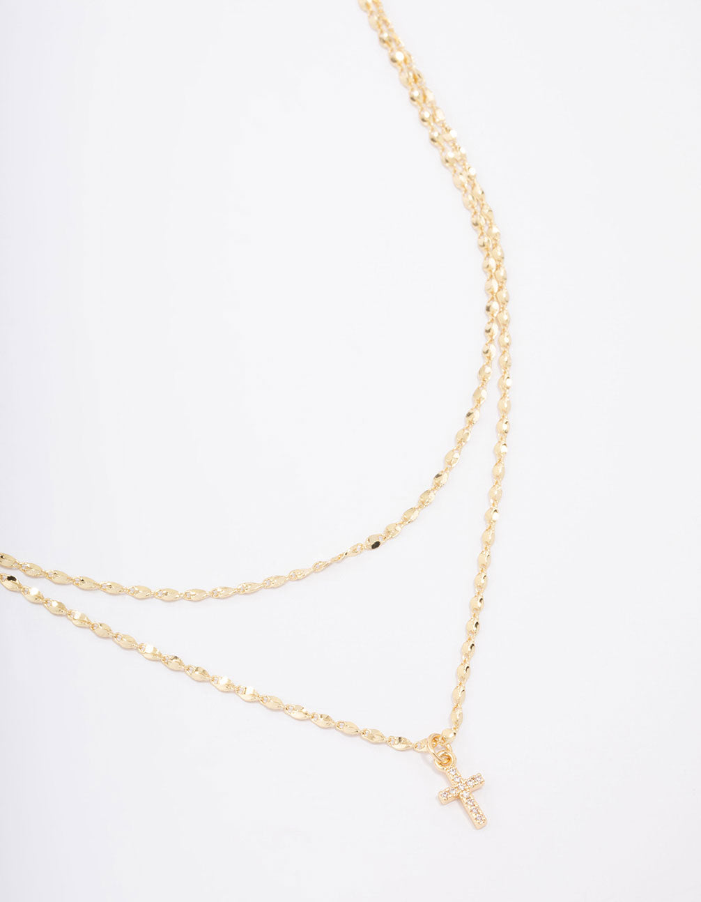 Gold Plated Cubic Zirconia Fine Cross Layered Necklace