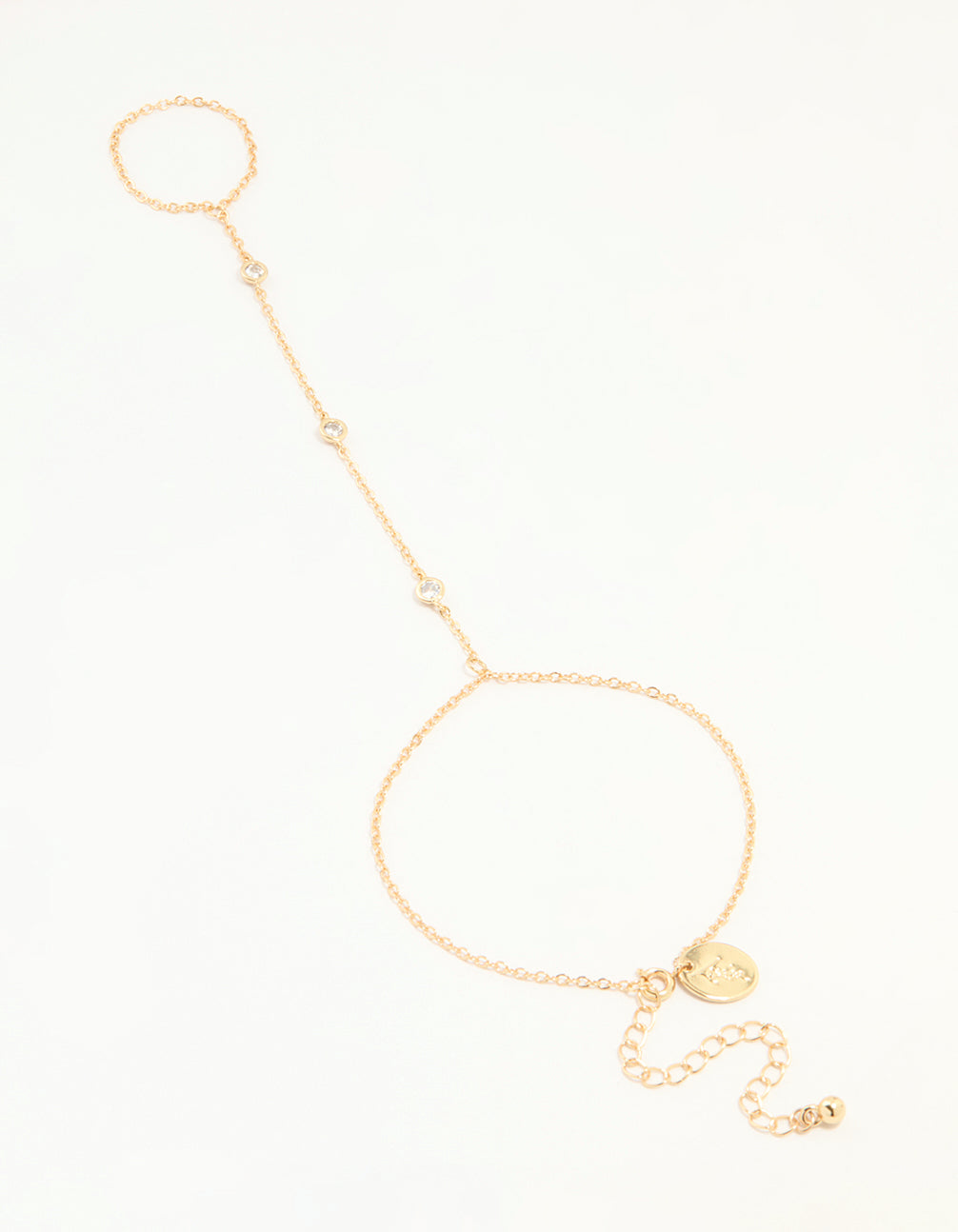 Gold Plated Cubic Zirconia Hand Chain Bracelet