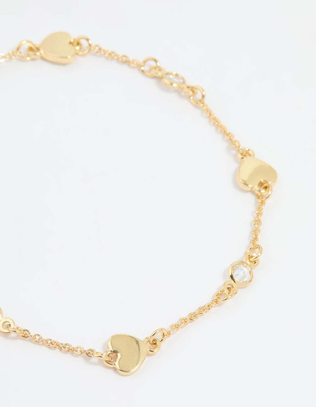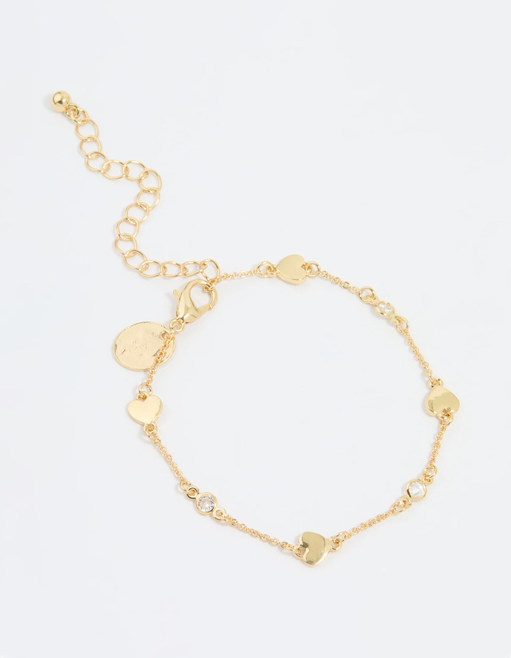 Gold Plated Cubic Zirconia & Heart Bracelet