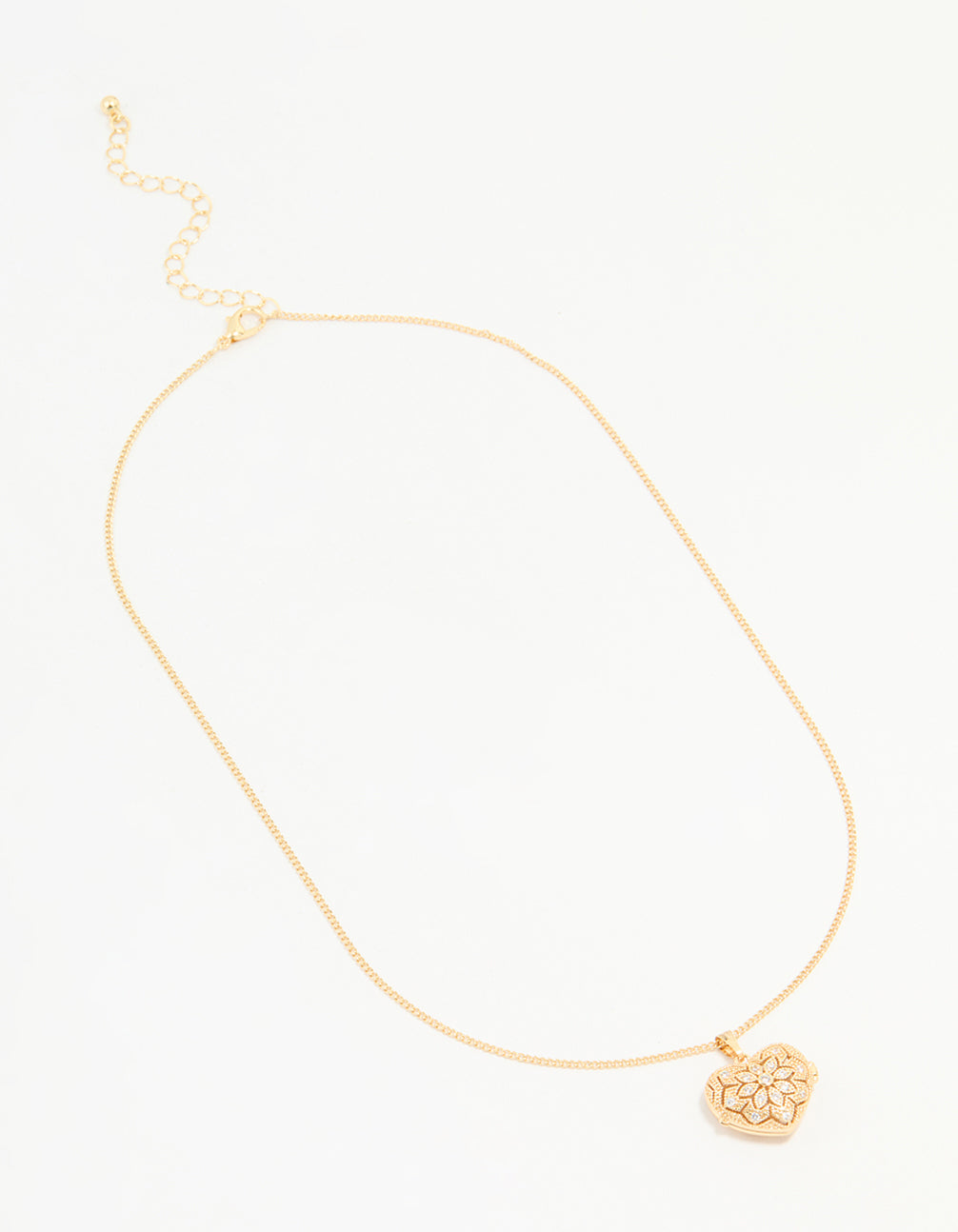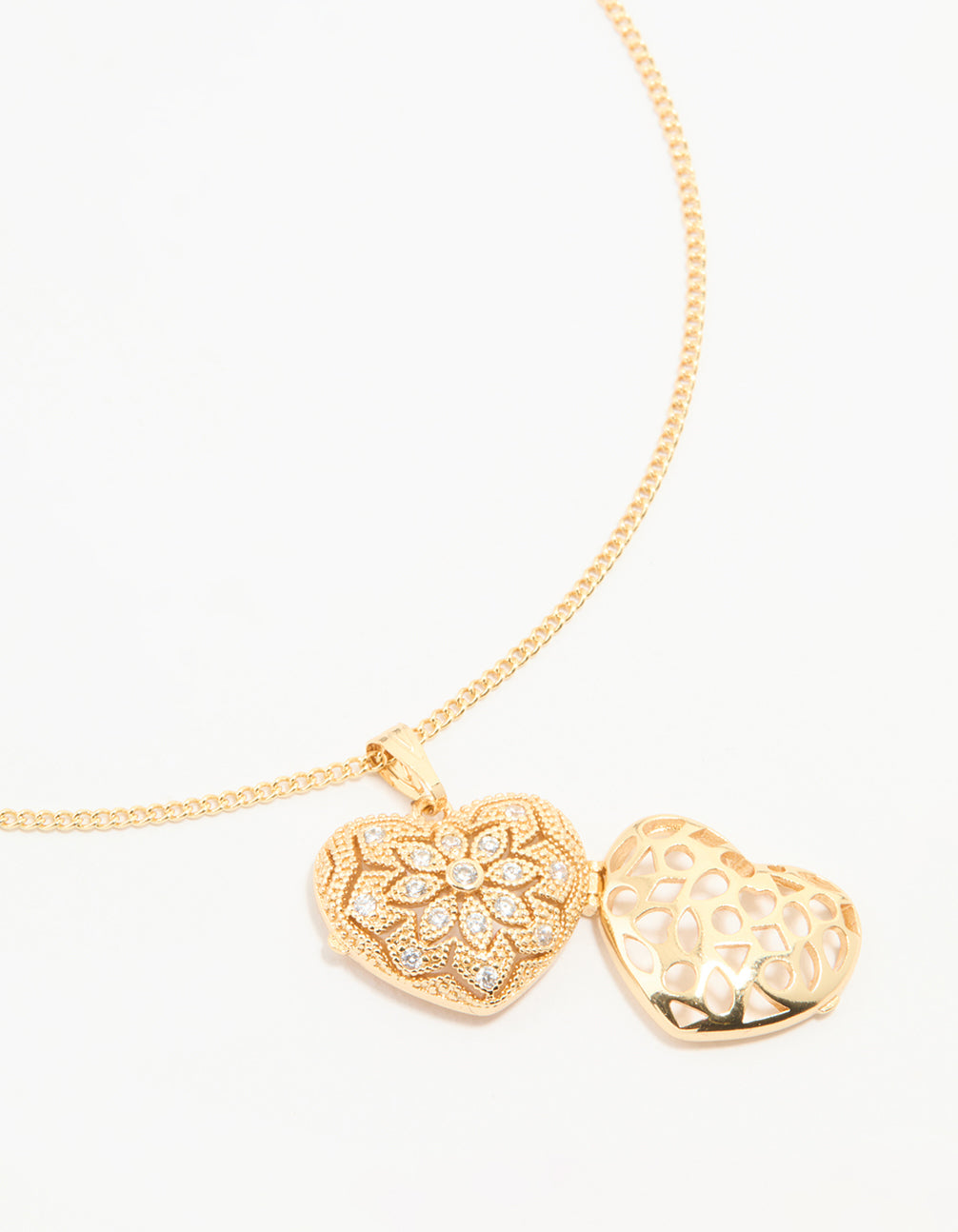 Gold Plated Cubic Zirconia Heart Locket Pendant Necklace