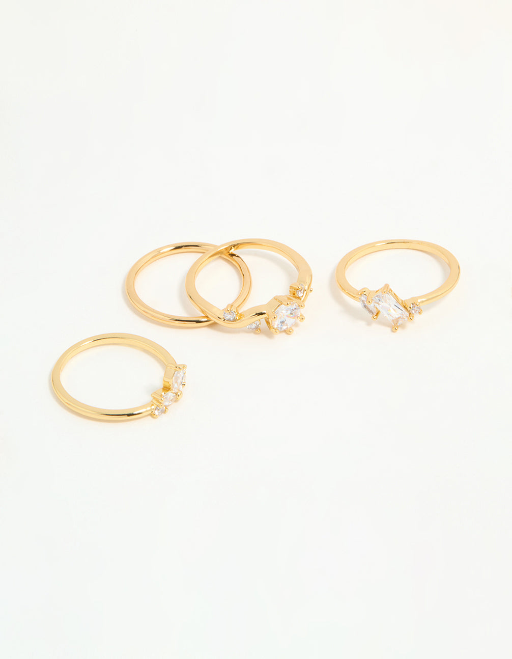Gold Plated Cubic Zirconia Leaf Marquise Rings 4-Pack