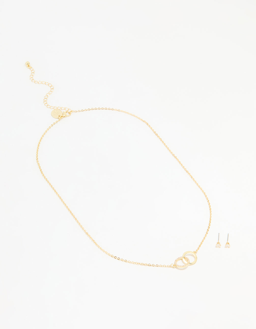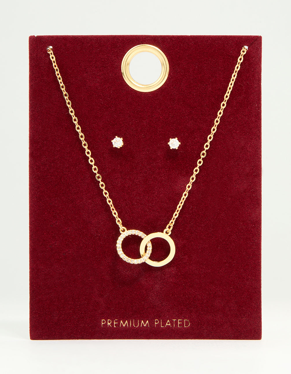Gold Plated Cubic Zirconia Linked Necklace & Stud Earrings Set