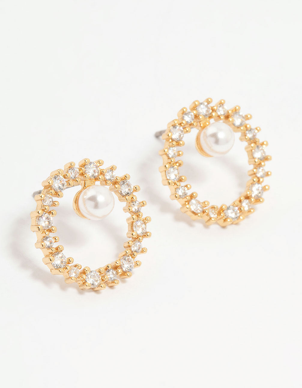 Gold Plated Cubic Zirconia Pearl Wreath Stud Earrings