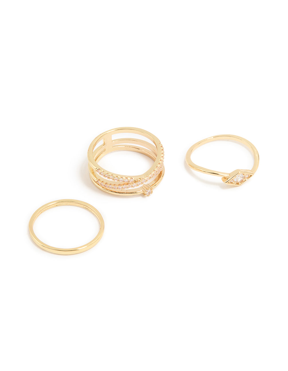 Add a splash of sparkle and style to your jewellery collection with this Gold Plated Cubic Zirconia Plain & Evil Eye Rings Pack. This elegant ring set includes four stunning designs: a sleek gold-plated thin band, a layered criss-cross cubic zirconia ring, a cubic zirconia centrepiece ring, and a cubic zirconia evil eye ring. Perfect for stacking or wearing individually, these rings combine modern charm with timeless gold plating and dazzling cubic zirconia crystals for a chic, polished look.