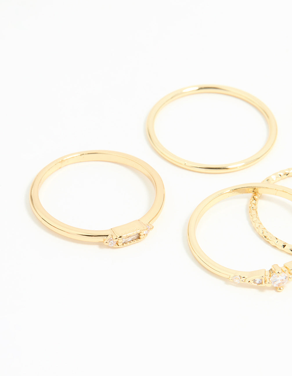 Gold Plated Cubic Zirconia & Plain Rings 5-Pack