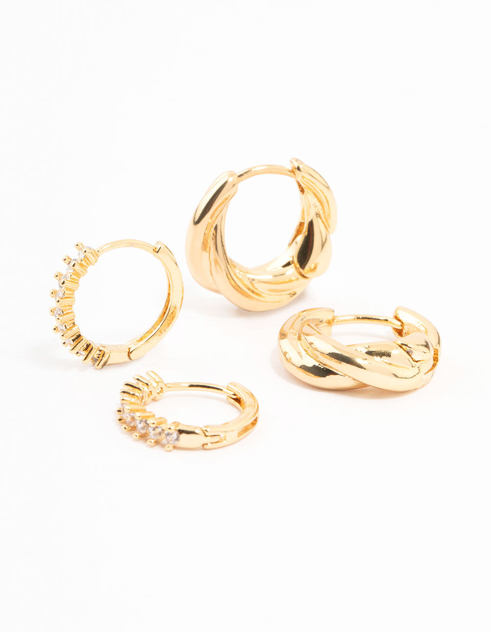 Gold Plated Cubic Zirconia Twist Huggie Earrings 2-Pack