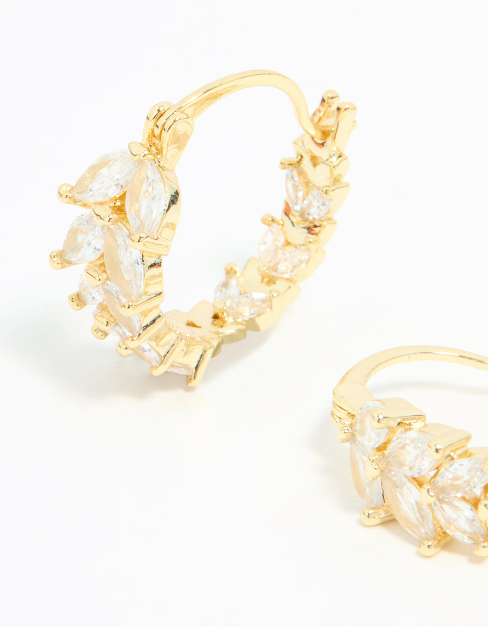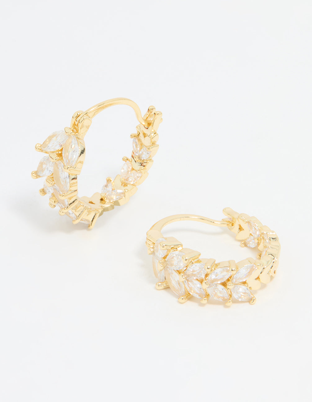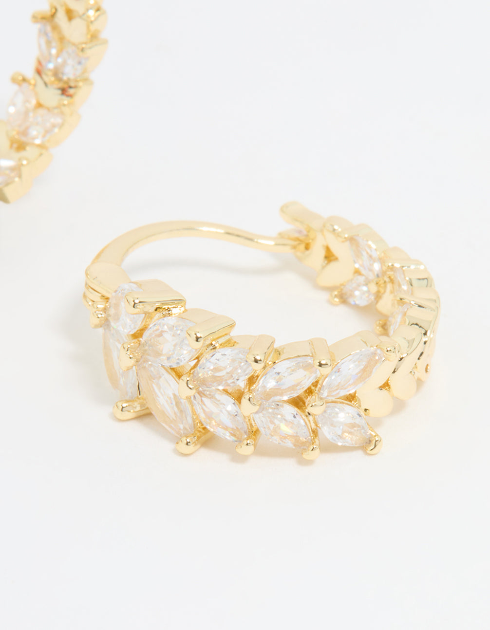 Gold Plated Cubic Zirconia Vine Hoop Earrings