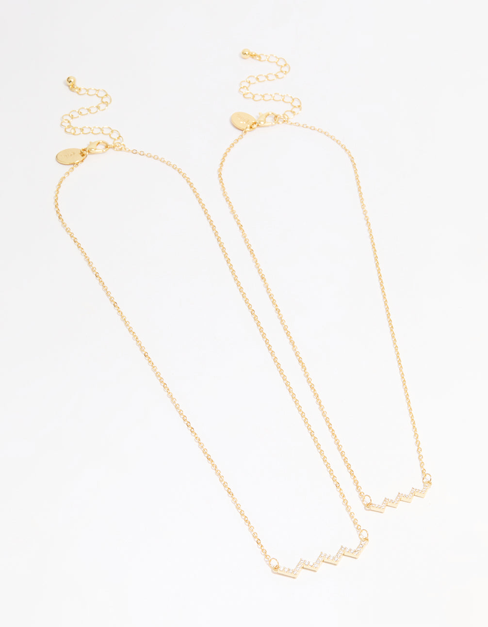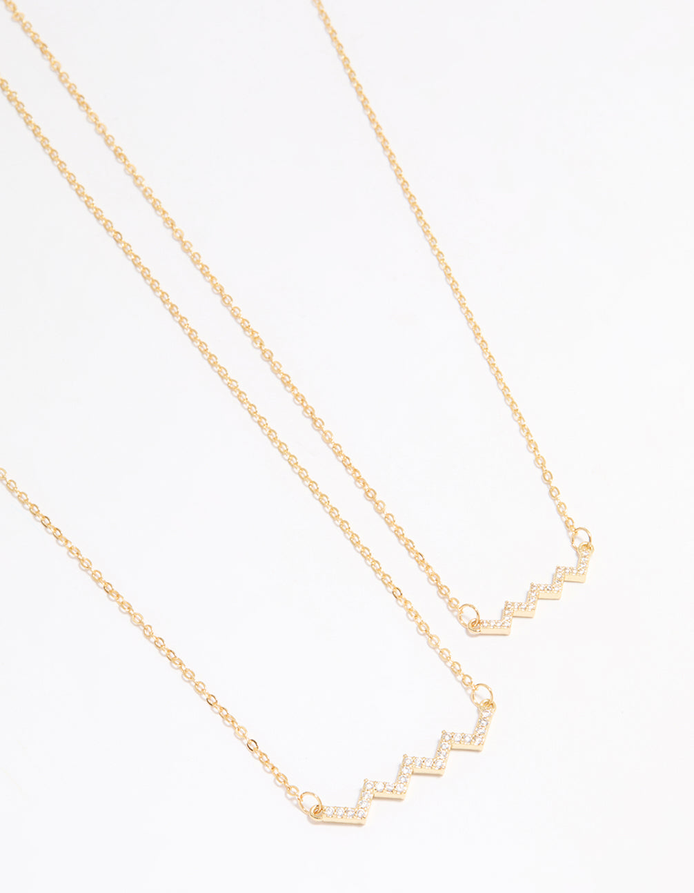 Gold Plated Cubic Zirconia Zig Zag Pendant Necklace Pack