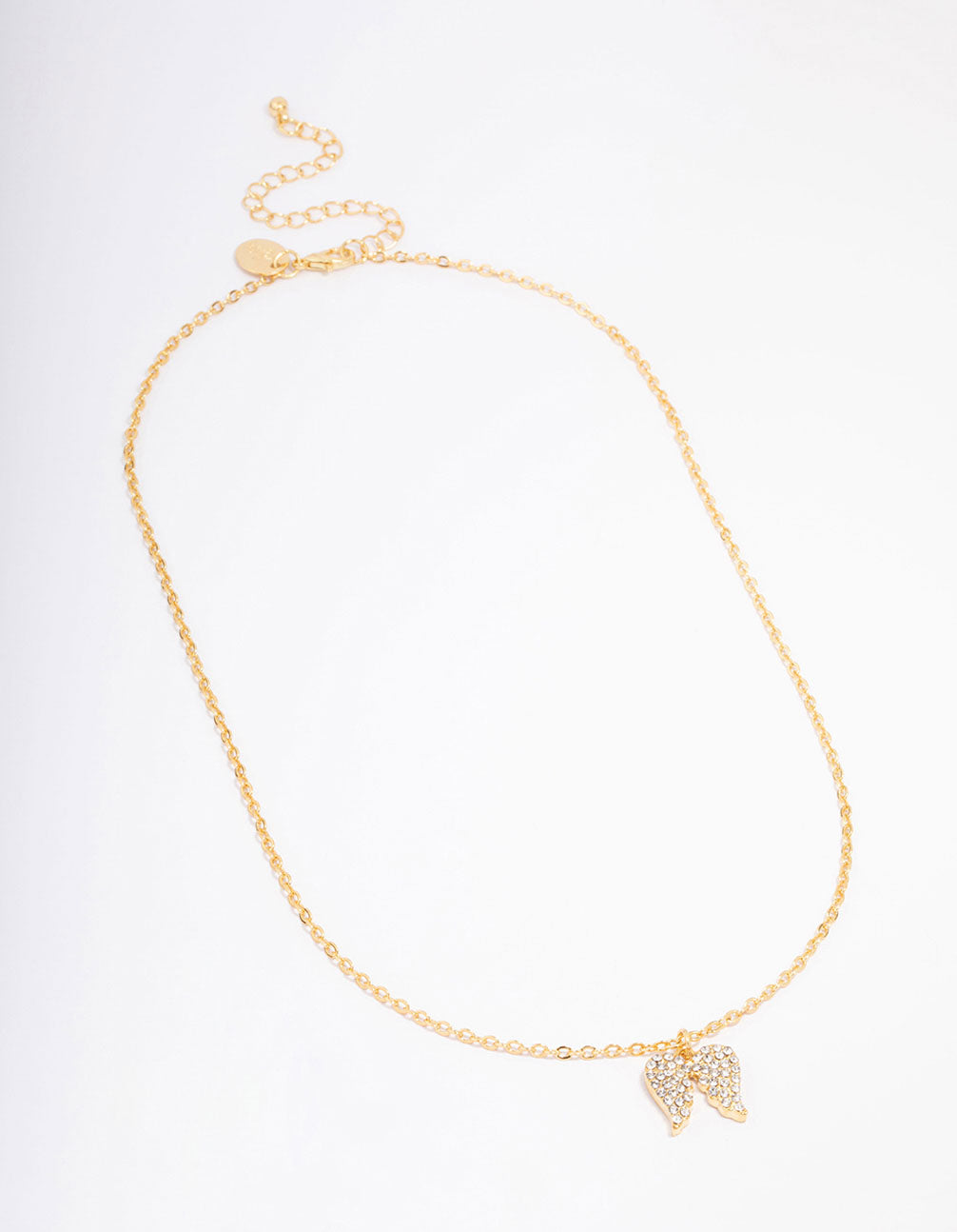 Gold Plated Diamante Angel Wing Pendant Necklace