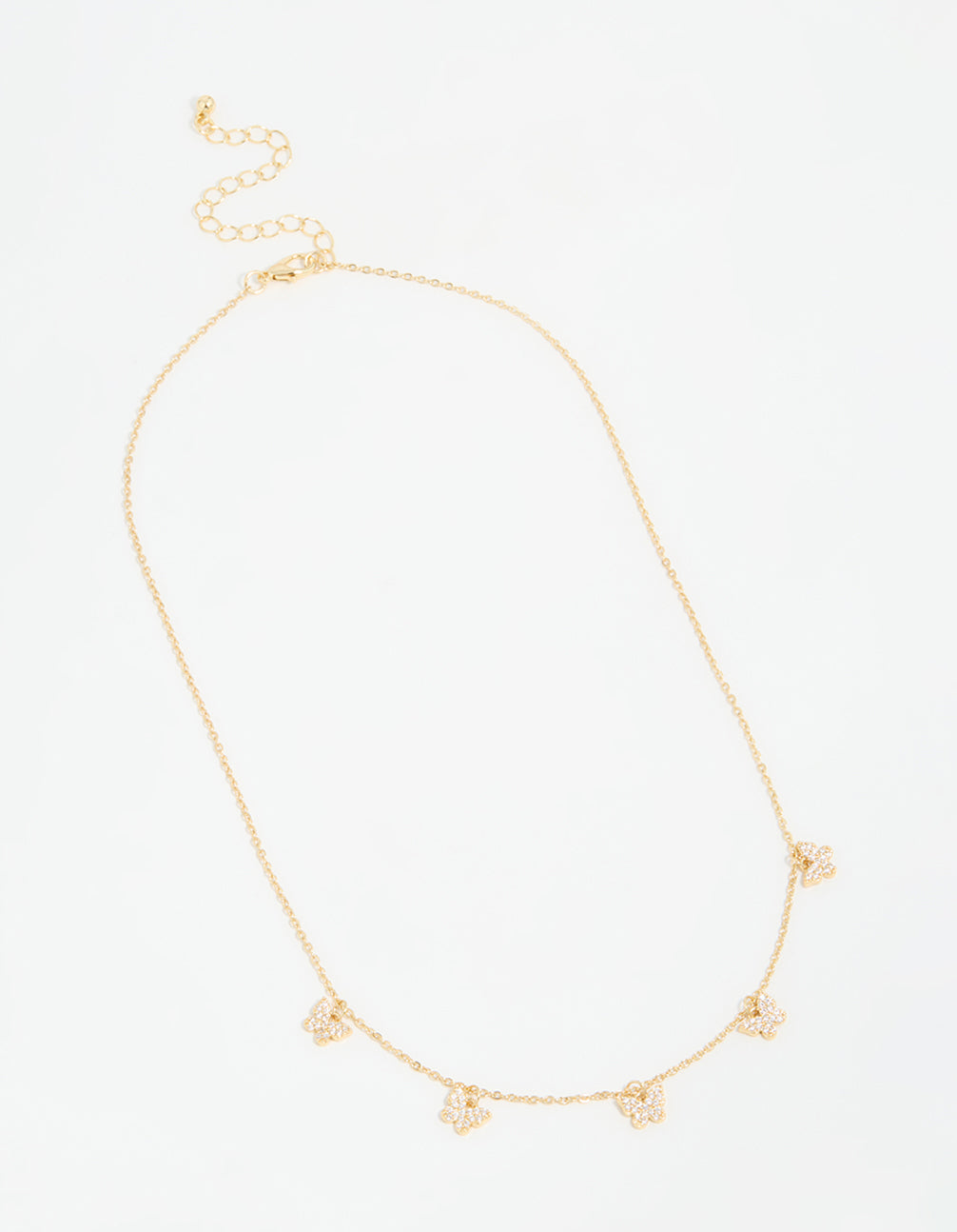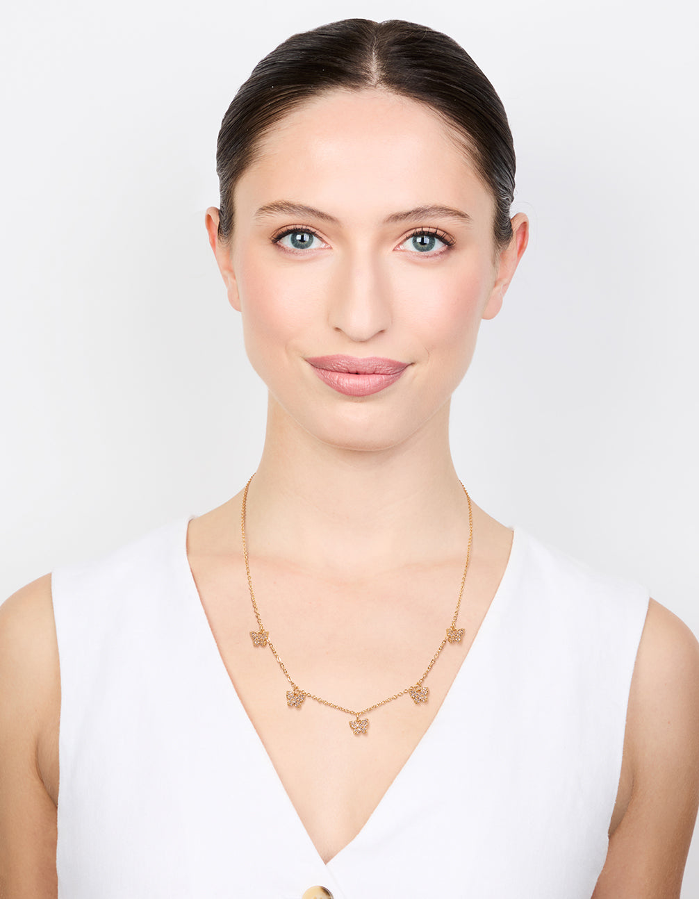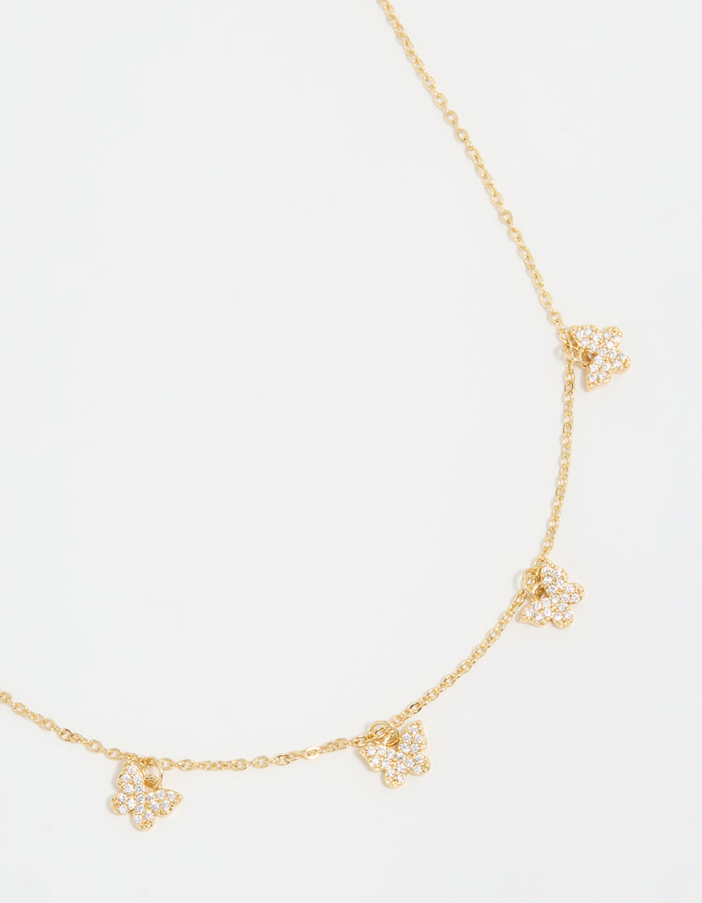 Gold Plated Diamante Butterfly Dainty Charm Necklace