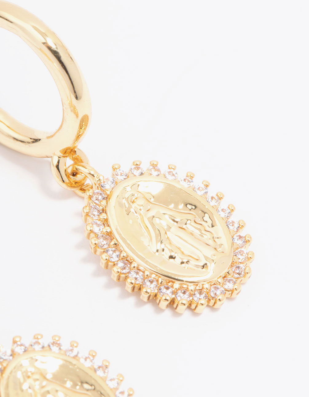 Gold Plated Diamante Classic Coin Hoop Earrings Gold Plated Diamante Classic Coin Hoop Earrings Gold Plated Diamante Classic Coin Hoop Earrings