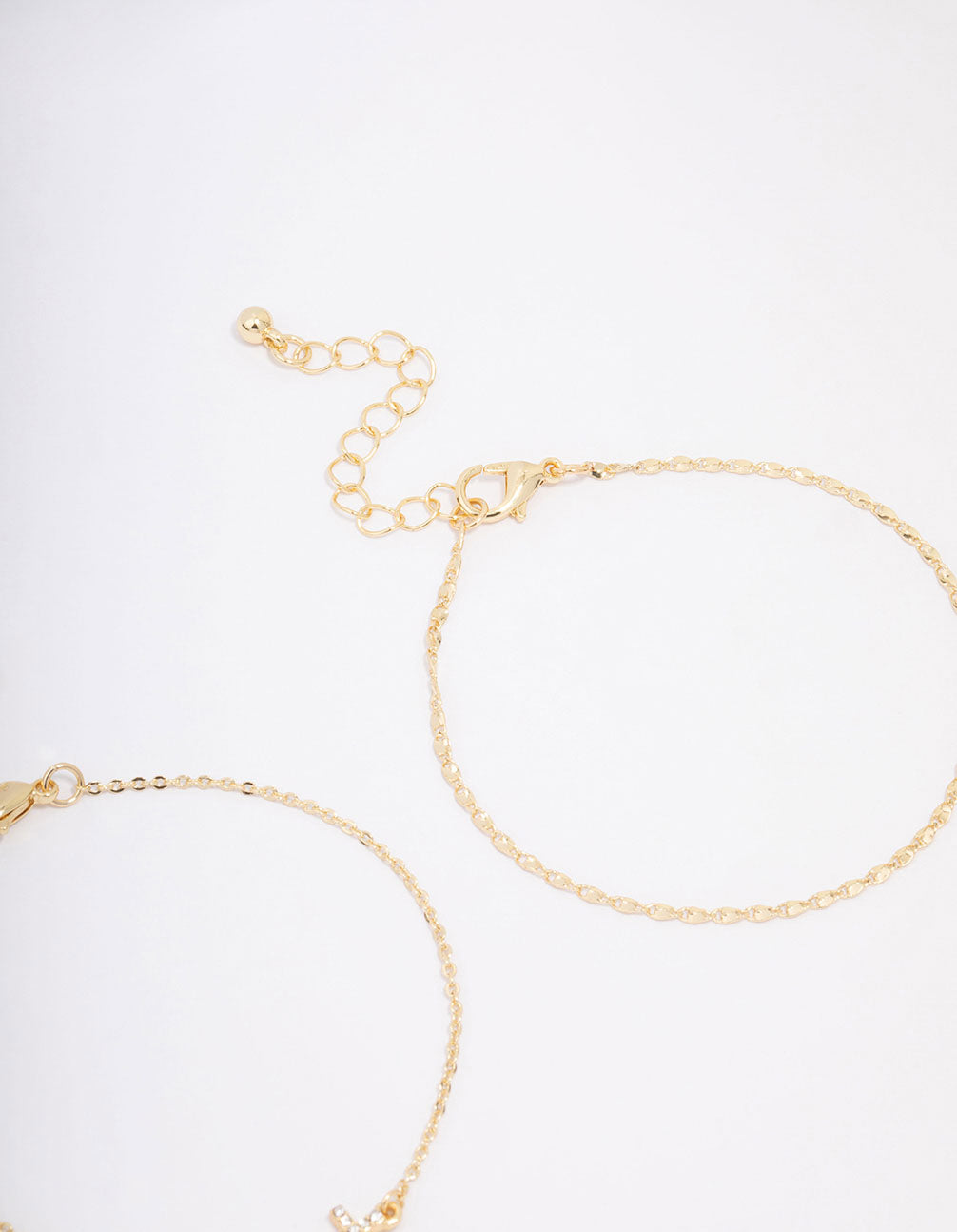 Curate the ultimate stack with this set of signature, gold plated bracelets. This bracelet pack contains three individual chain bracelets, each adorned with delicate diamantes for a touch of sparkle.