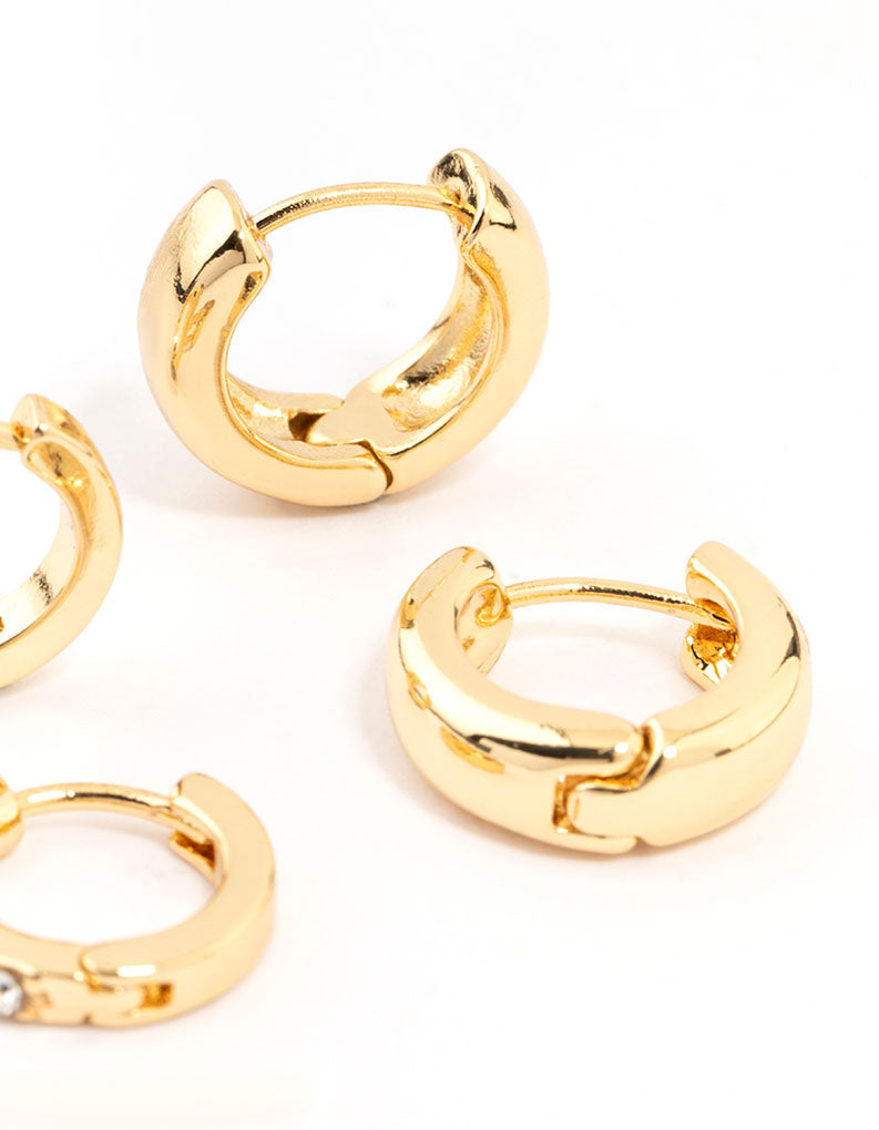 Gold Plated Diamante & Plain Huggie Earrings 2-Pack