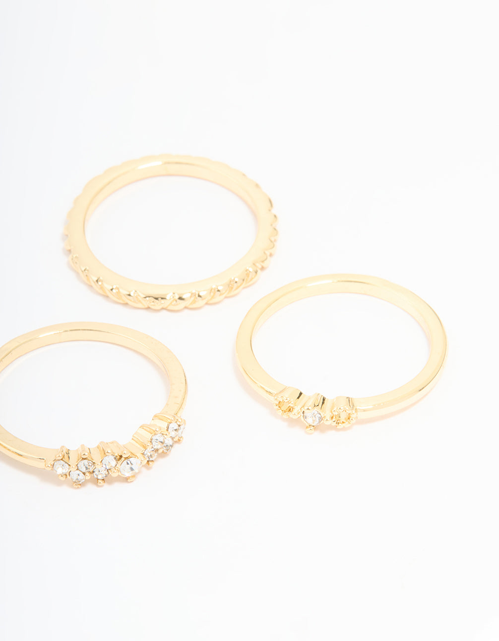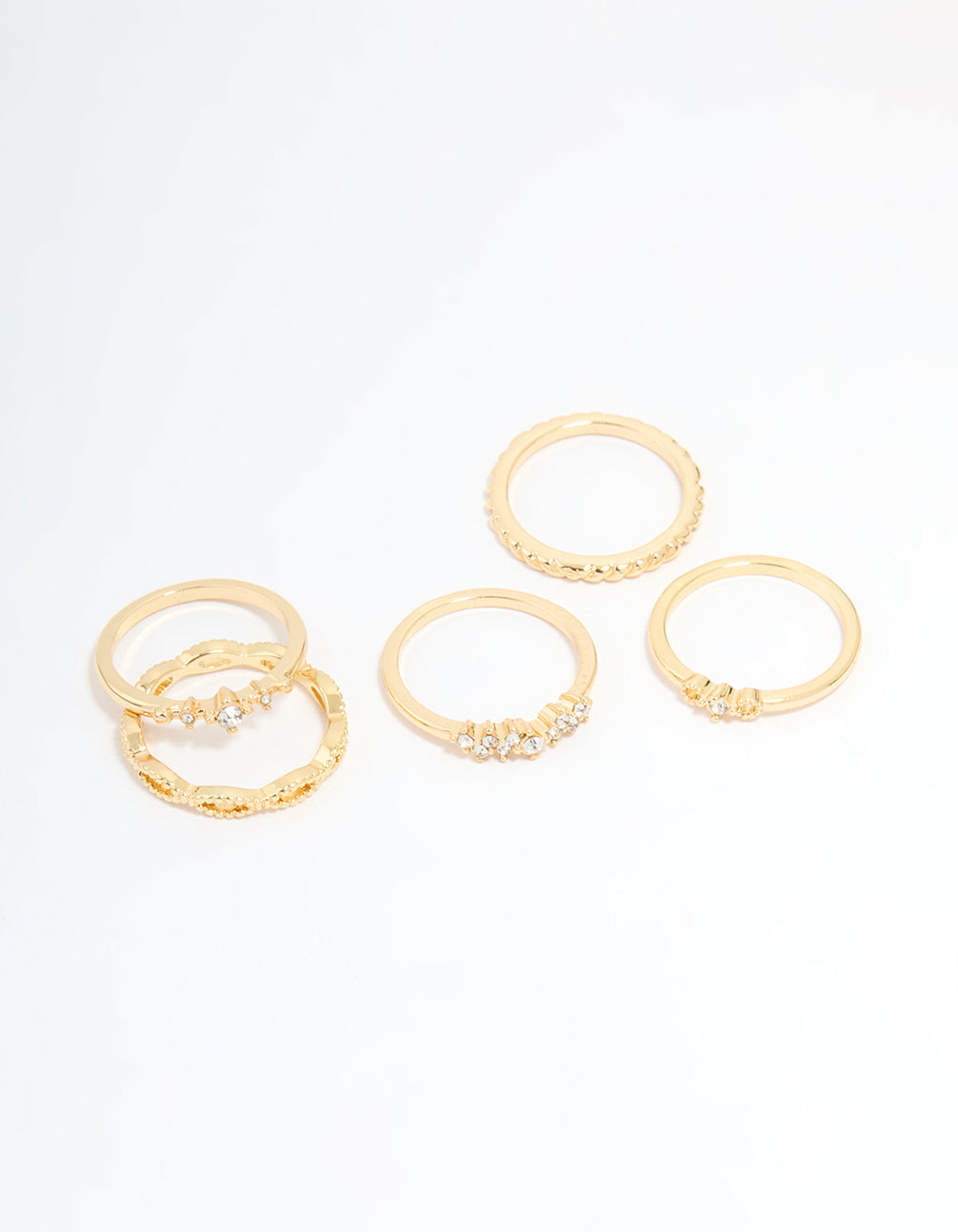 Add a touch of elegance to your jewellery collection with this Gold Plated Diamante Rings Pack. Featuring delicate gold plating and dazzling diamantes, this set is perfect for those who love versatile, timeless accessories. Whether you're stacking them together for a chic layered look or wearing them individually for understated charm, these rings are ideal for any occasion. Dress them up for a party or pair with your everyday outfits for a subtle sparkle. Perfect for gifting or treating yourself, these rings are a stylish addition to any jewellery box. Their delicate design makes them easy to pair with other gold-tone jewellery, creating a polished, coordinated finish. For effortless glamour, these rings are your new go-to!