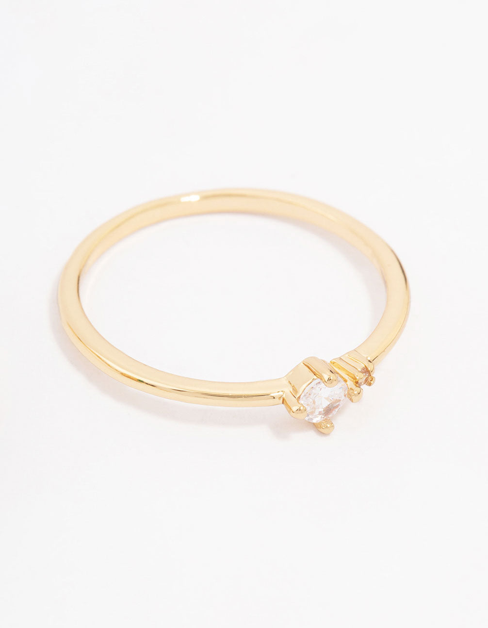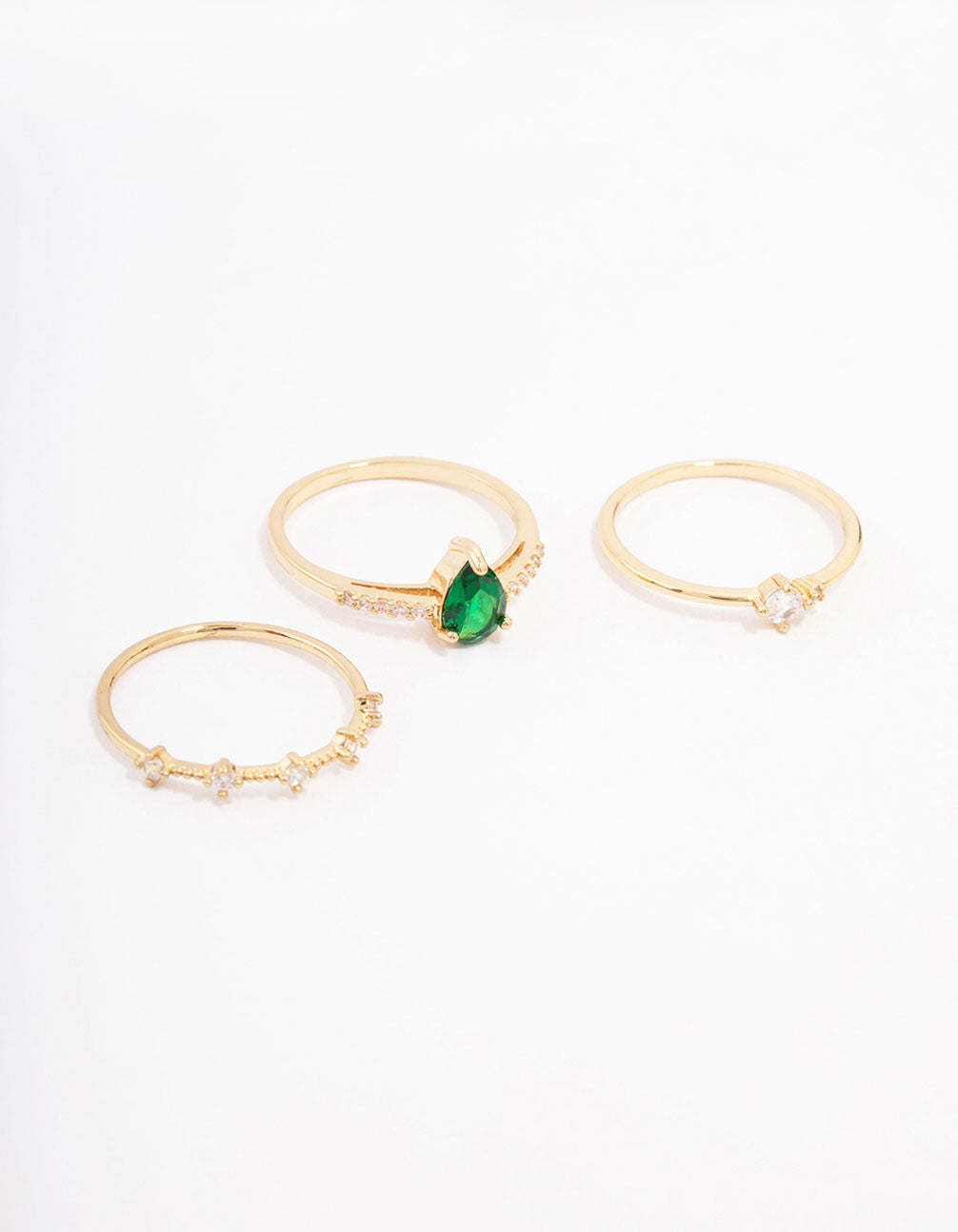 For a detailed addition to your stack, style these gold plated rings. This ring pack includes three individual rings, each designed with a dainty silhouette and encrusted with cubic zirconia crystals for a touch of sparkle.