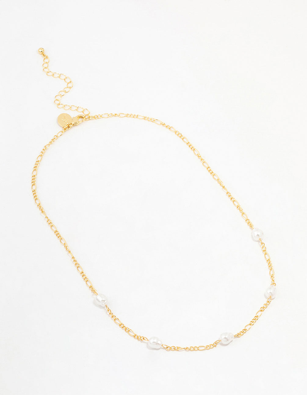 Add a little extra shimmer and shine with this gold plated brass pearl necklace in a delightful figaro chain. The beaded links and the lustrous pearls add some elegance and glamour and it's lightweight for effortless daily wear.